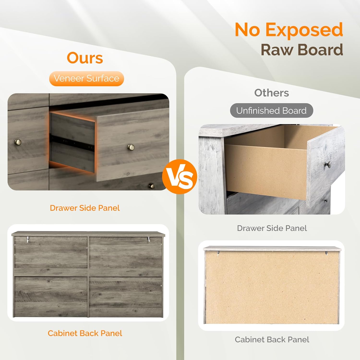 - 【Upgraded Material】The wooden dresser and the water-proof finish is resistant to scratches and water, so the chest will remain sturdy and intact over time. Each drawer is equipped with durable metal full-extension glides, ensuring effortless opening and closing, making it a breeze to access your items.