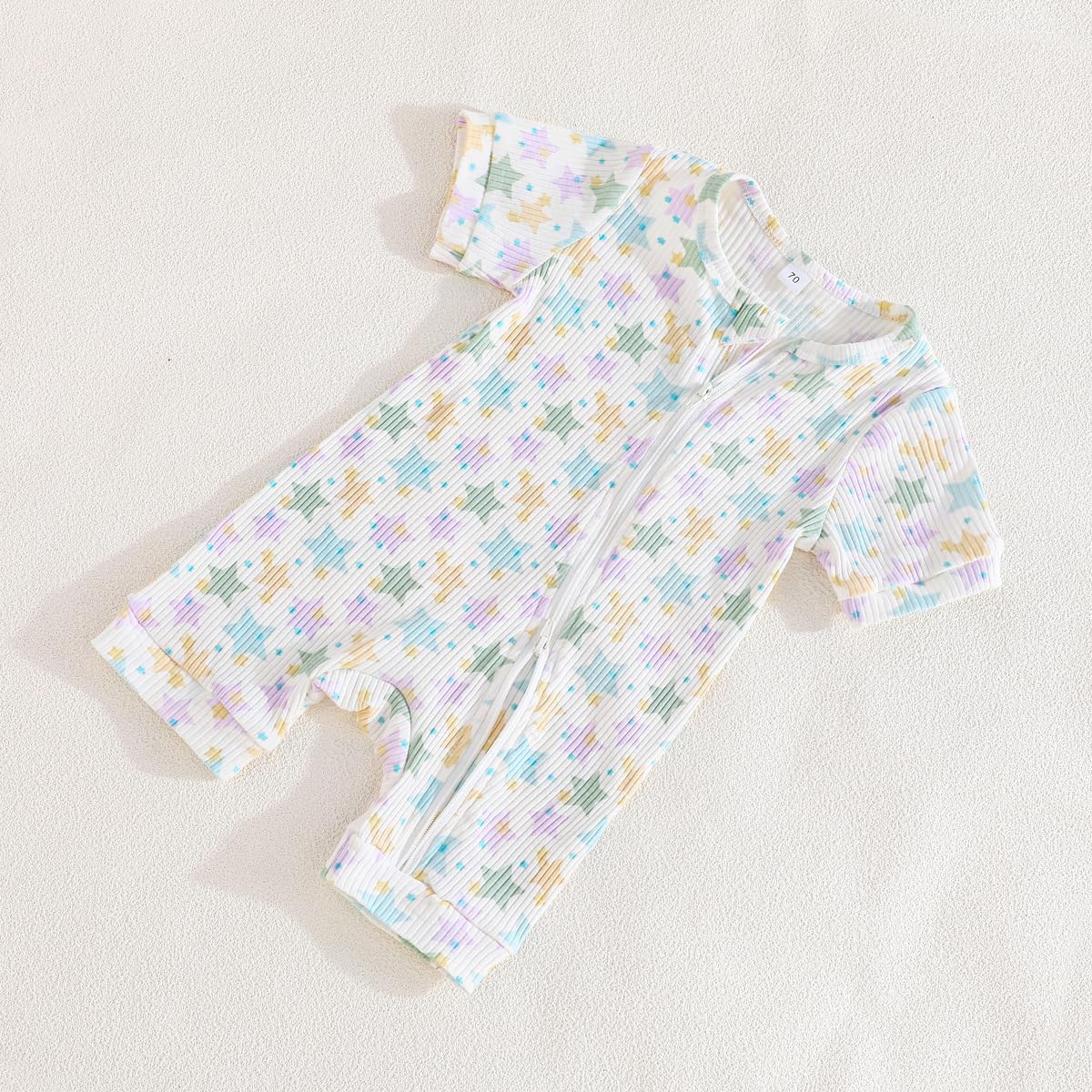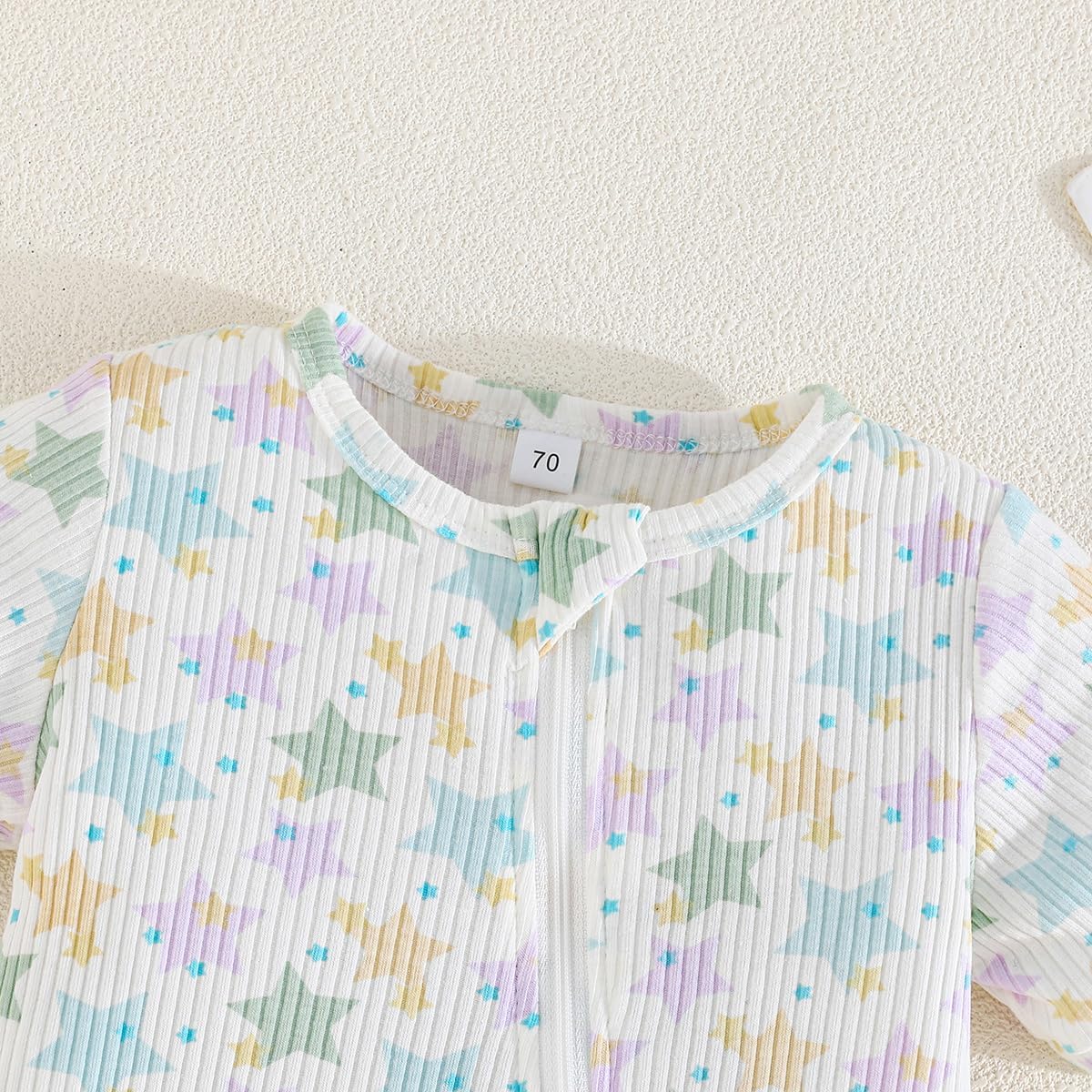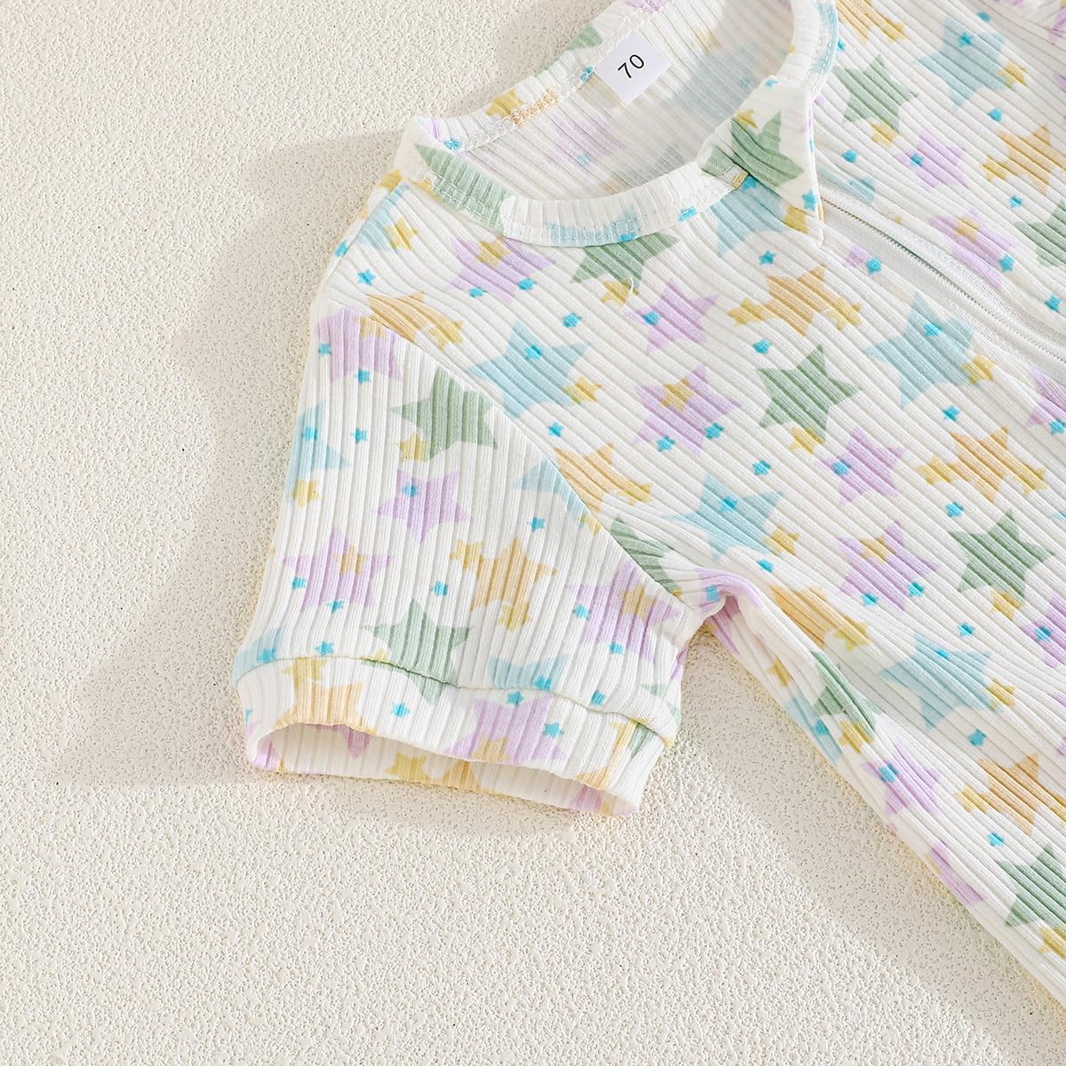 Bafeicao Unisex Baby Boy Girl 2 Pack Rompers Short Sleeve 2 Way Zipper One Piece Jumpsuits Clothes Sets