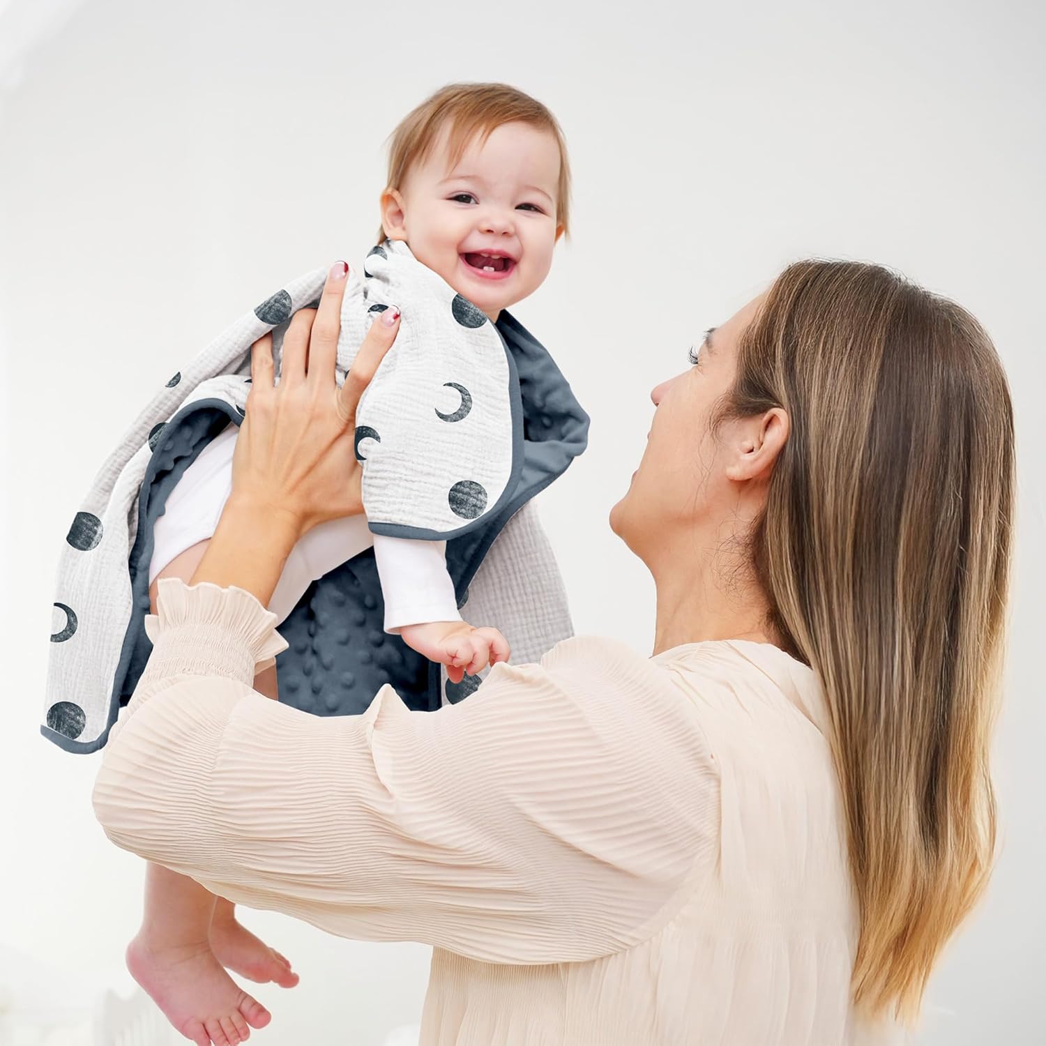 - Premium Material: Our baby blankets for unisex boys and girls are made from 100% muslin cotton on the front and ultra-soft dot fleece fabric on the back. This combination ensures warmth and comfort, making it gentle on your baby's sensitive skin. Perfect for all seasons, this muslin baby blanket creates a cozy environment for your little one to sleep soundly.