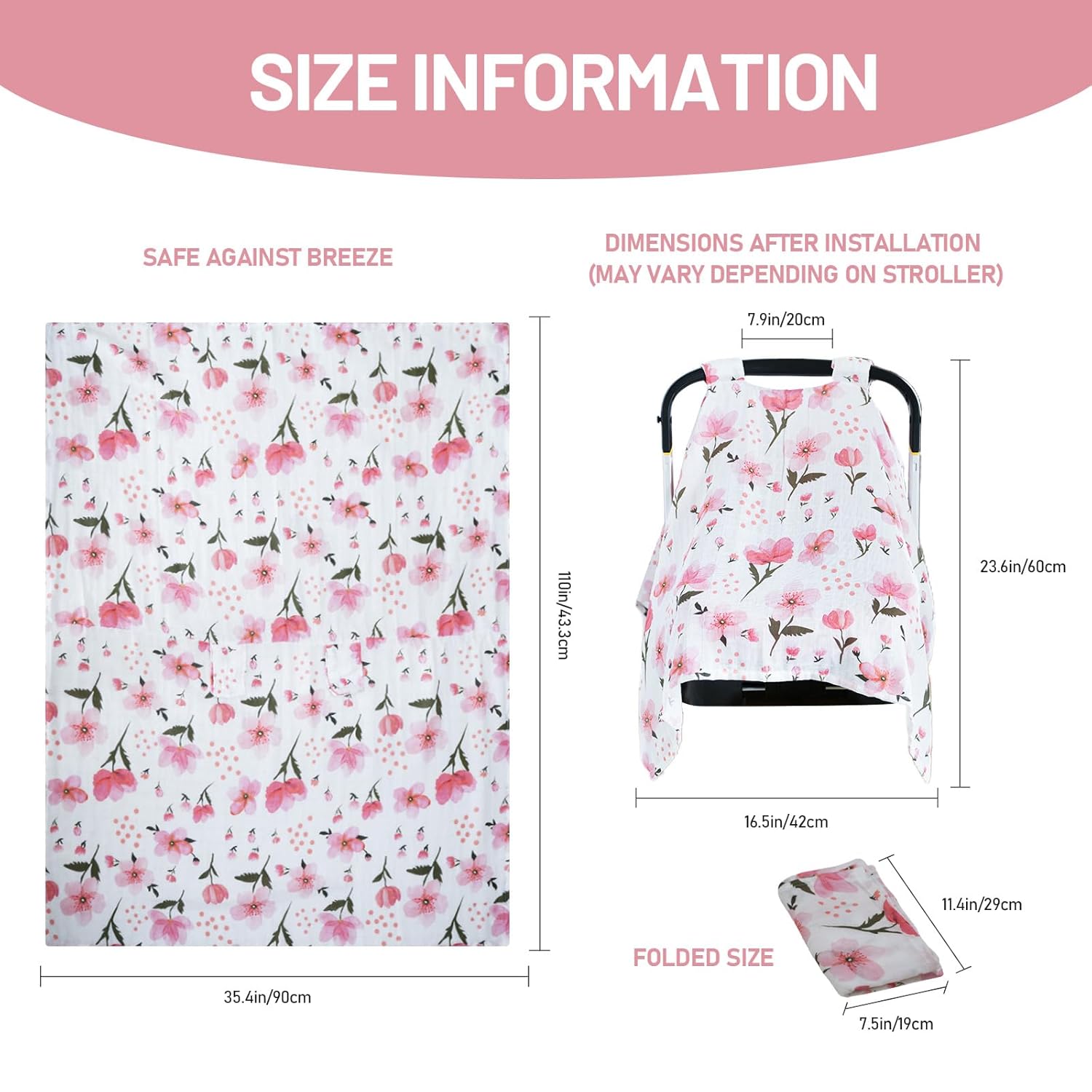 • Premium Thin-Layer Muslin Fabric: Made from high-quality muslin, this baby carseat cover offers a cool, breathable environment perfect for warm weather—providing a delicate, soft feel that’s both comfortable and durable.