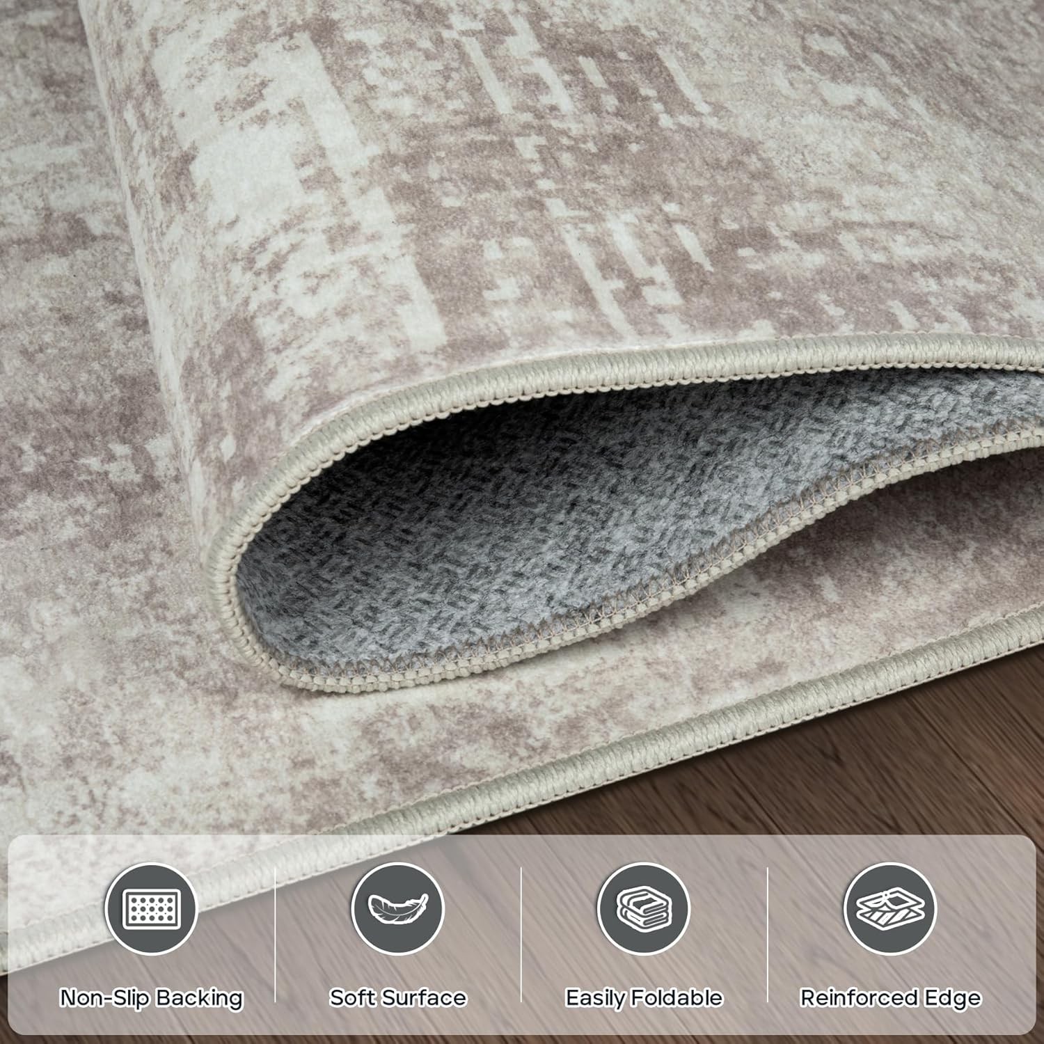 10x14 Area Rugs Large Living Room Rug Washable: Modern Abstract Rug Indoor Modern Carpet Non Slip for Dining Room Bedroom Nursery Home Office Brown Grey