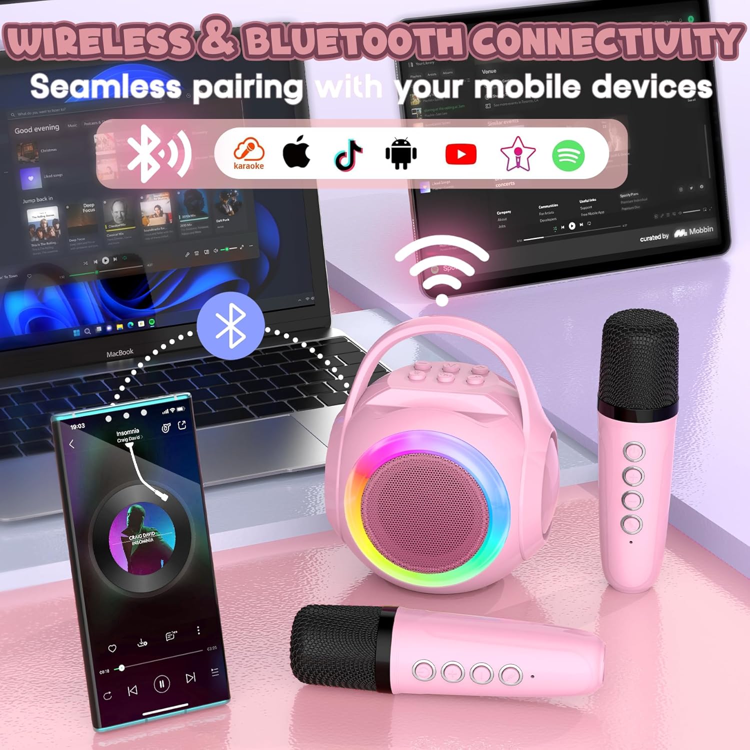 Hockvill Mini Karaoke Machine for Kids with 2 Microphones, Bluetooth Toddler Karaoke Toy with LED Lights, Rechargeable Portable Speaker for Girls & Boys Ages 3-10, Children’s Day & Birthday Gift Ideas