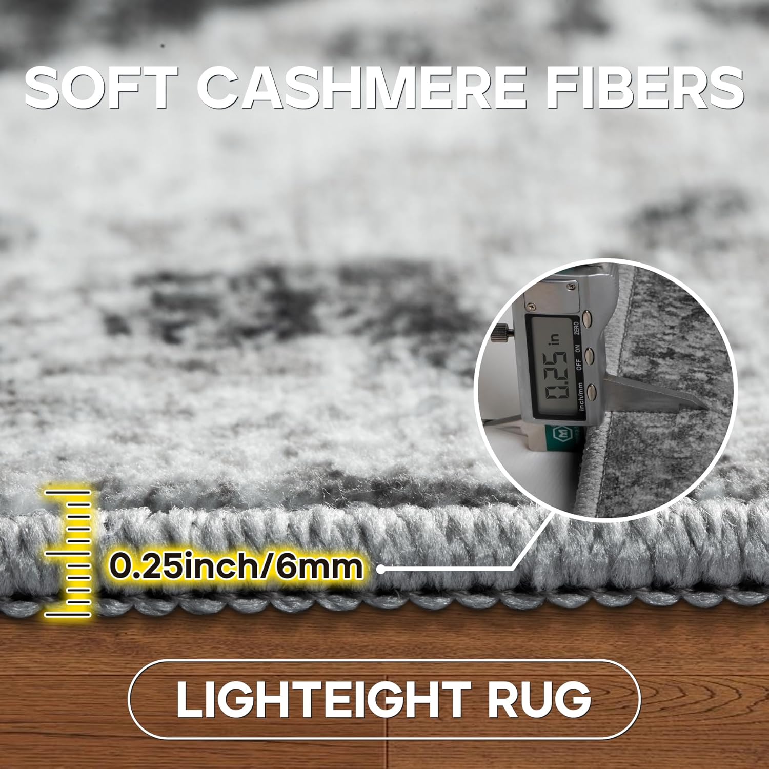 4x6 Area Rugs for Living Room Rug Washable: Modern Large Rug for Dining Room Bedroom Carpet Non Slip Low Pile 4 by 6 Indoor Abstract Nursery Home Office Black Grey