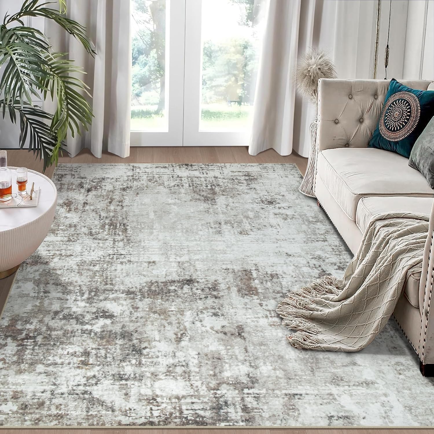 4x6 Area Rugs for Living Room Rug Washable: Modern Large Rug for Dining Room Bedroom Carpet Non Slip Low Pile 4 by 6 Indoor Abstract Nursery Home Office Brown Grey