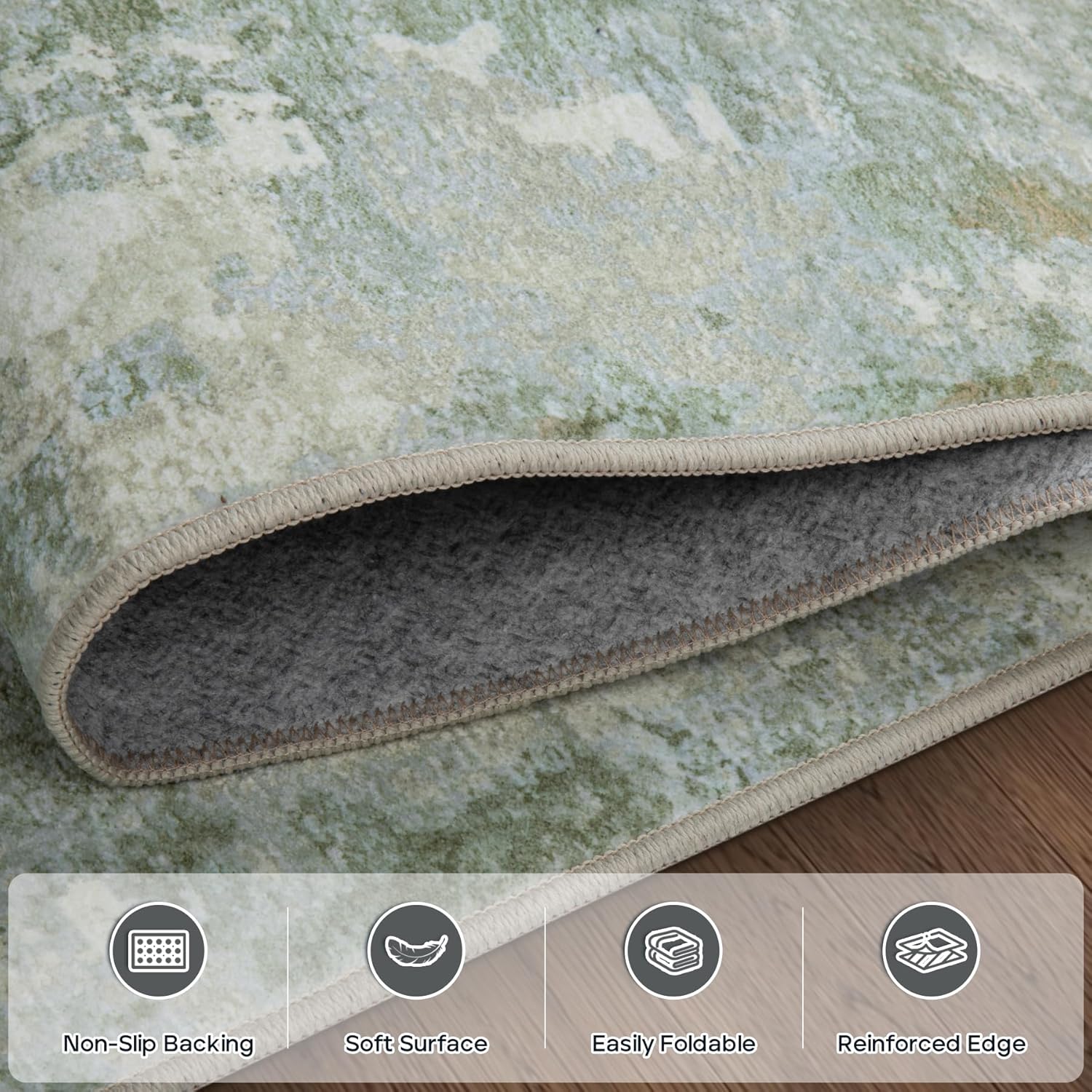9x12 Area Rugs for Living Room Rug Washable: Modern Large Rug for Dining Room Bedroom Carpet Non Slip 9 by 12 Indoor Abstract Nursery Home Office Green