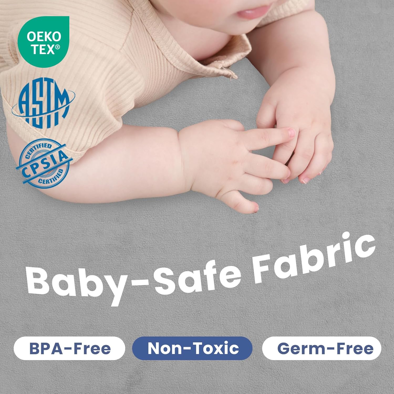 - 【SAFE FOR BABY】:Our beige baby play mats can be used as playpens, transforming your kids' play area into a soft and safe adventure zone. Children will love rolling, sliding, and playing on our mats without you worrying about them getting hurt on hard floors. The activity play gym is also great for tummy time for little ones. Walking on it with bare feet feels heavenly! Plus, it passes CPSIA and ASTM tests, so you can use it with confidence and peace of mind