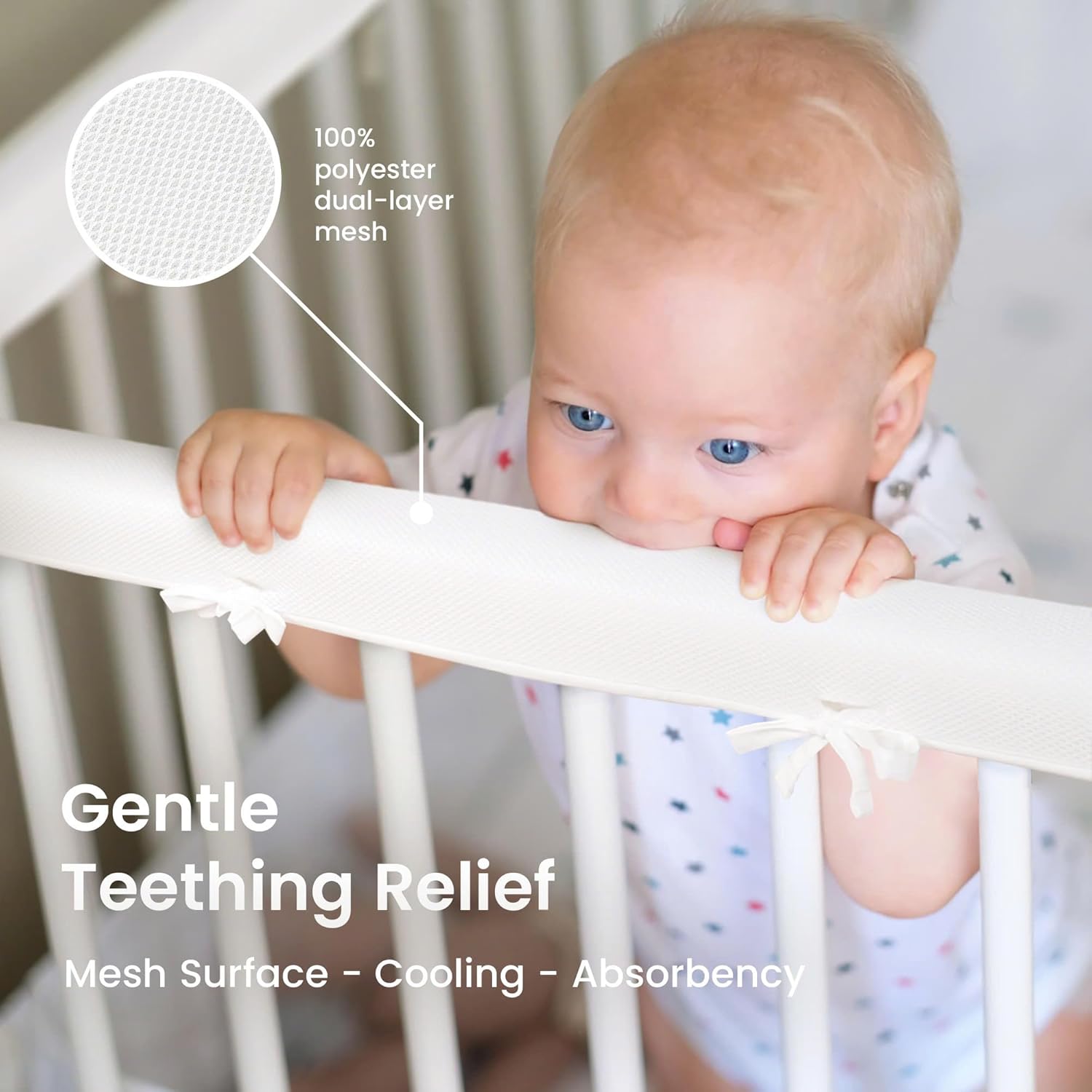 - Universal Fit & Neutral Design – This crib teething guard features flexible mesh and long ties to fit most crib styles and rail sizes. The clean white color and simple design blend well with any nursery décor, whether for a boy or girl, and suit both classic and modern themes.