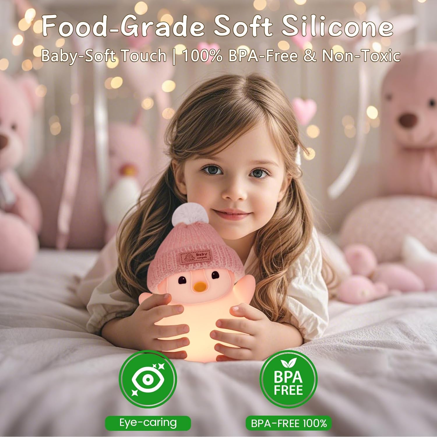 Penguin Night Light, Cute Pink Penguin Lamp with Knit Hat, Soft Silicone Nursery Nightlight for Baby, Rechargeable/Dimmable/Timer,LED Squishy Novelty Animal Bedside Lamp,Funny Gifts for Kids