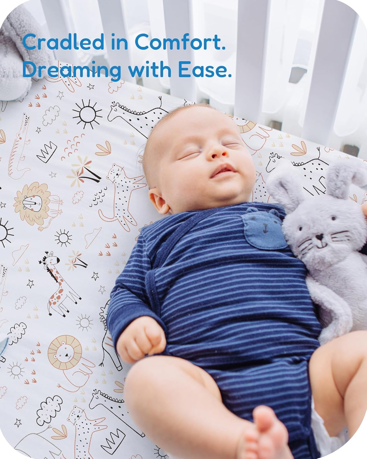 - Premium Softness & Comfort: Crafted from high-quality polyester, these mini crib sheets fitted are buttery soft, breathable, and temperature-regulating, keeping your baby cozy throughout every season. The gentle stretch ensures a snug fit, while the fabric remains airy yet warm for all-day comfort.