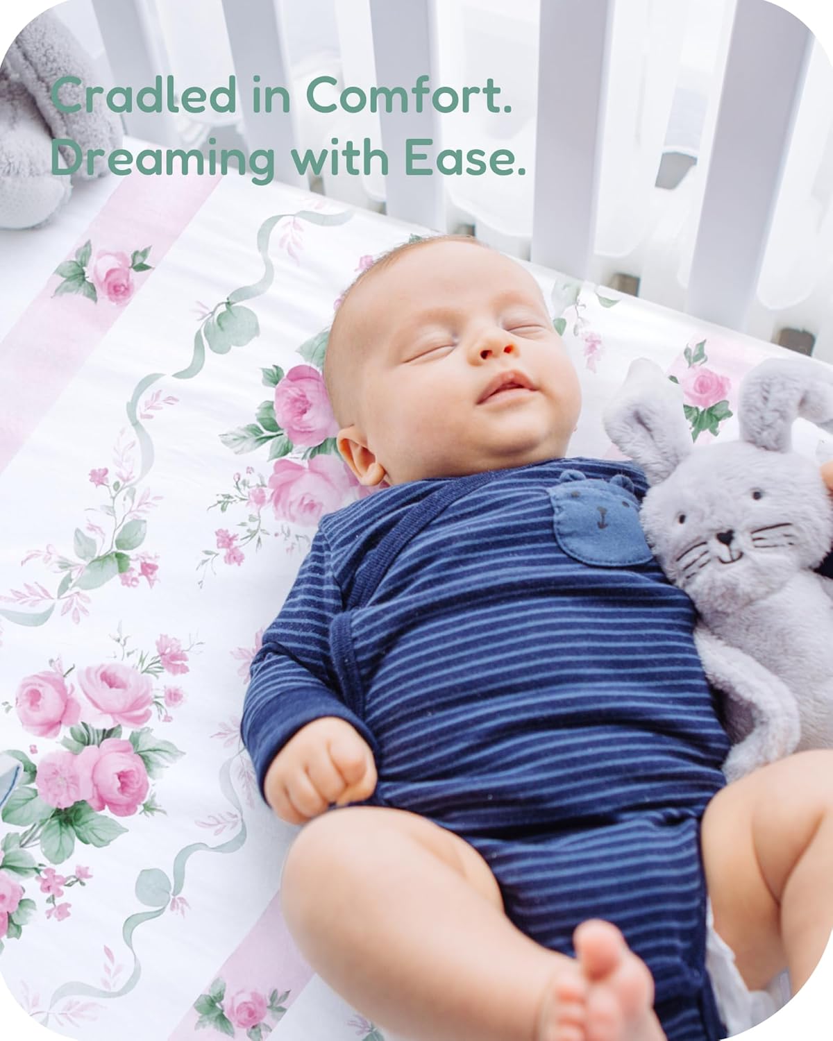 - Elastic Edge for a Secure Fit: Featuring a full elastic edge, these crib sheets girl provide a snug, stay-in-place fit that’s easy to put on and take off, making crib sheet changes hassle-free.