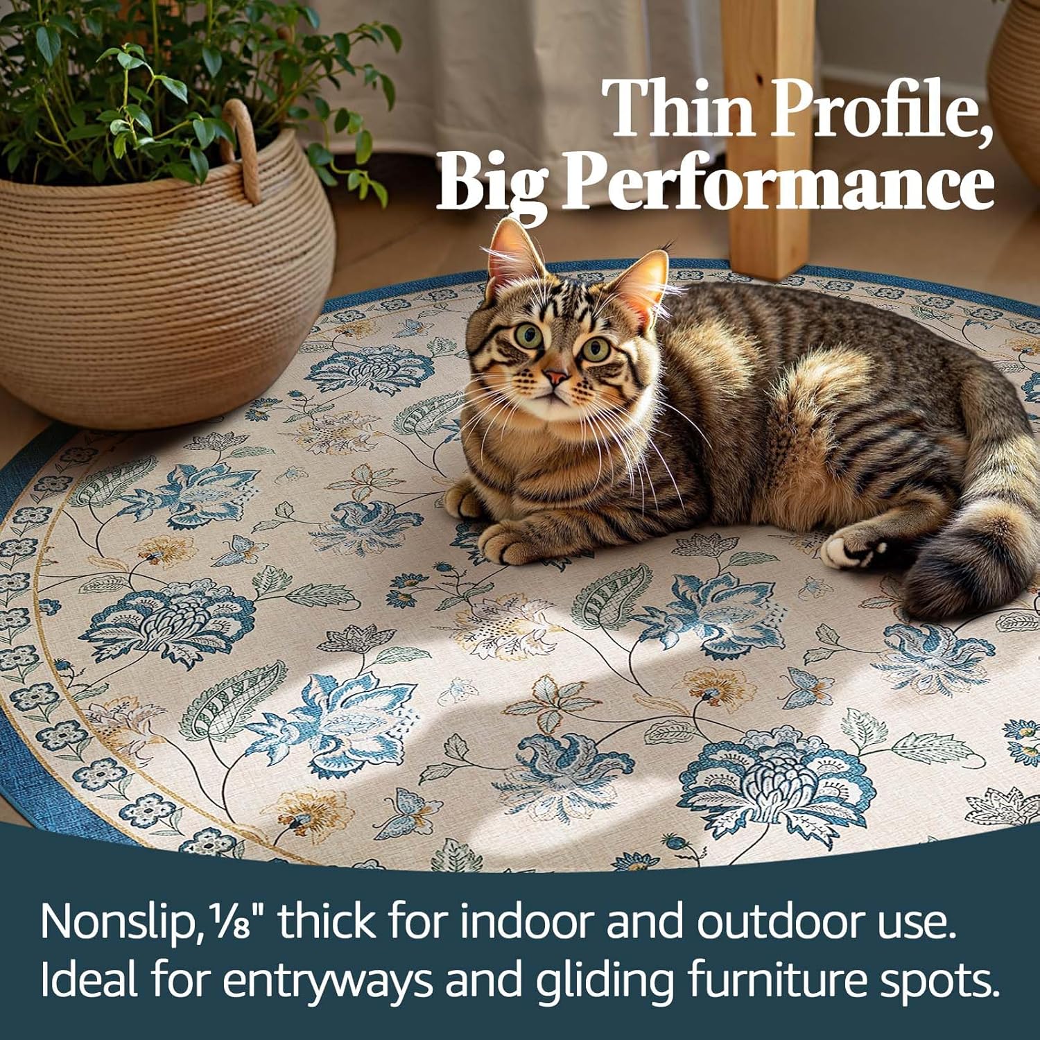 - Slim, Secure & Floor-Friendly: At just 1/8″ thick, this lightweight rug slips easily under doors and furniture while its built-in non-slip backing keeps it firmly in place. Perfect for high-traffic areas, it offers style and stability without bulk.