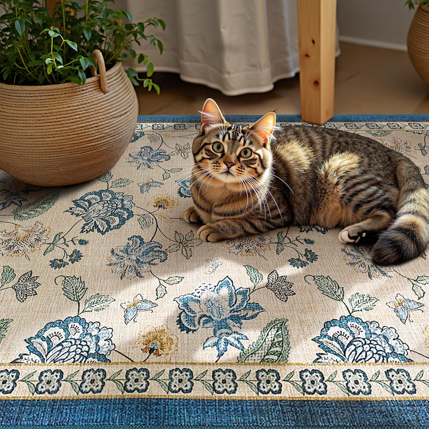 - Freshen Entryway & Kitchen: Perfectly sized to welcome guests at doorway or brighten cozy kitchen corner, this compact rug brings vintage floral charm without adding bulk. Its slim, easy-care design fits snugly in busy spots, making everyday life a little more stylish and effortless.