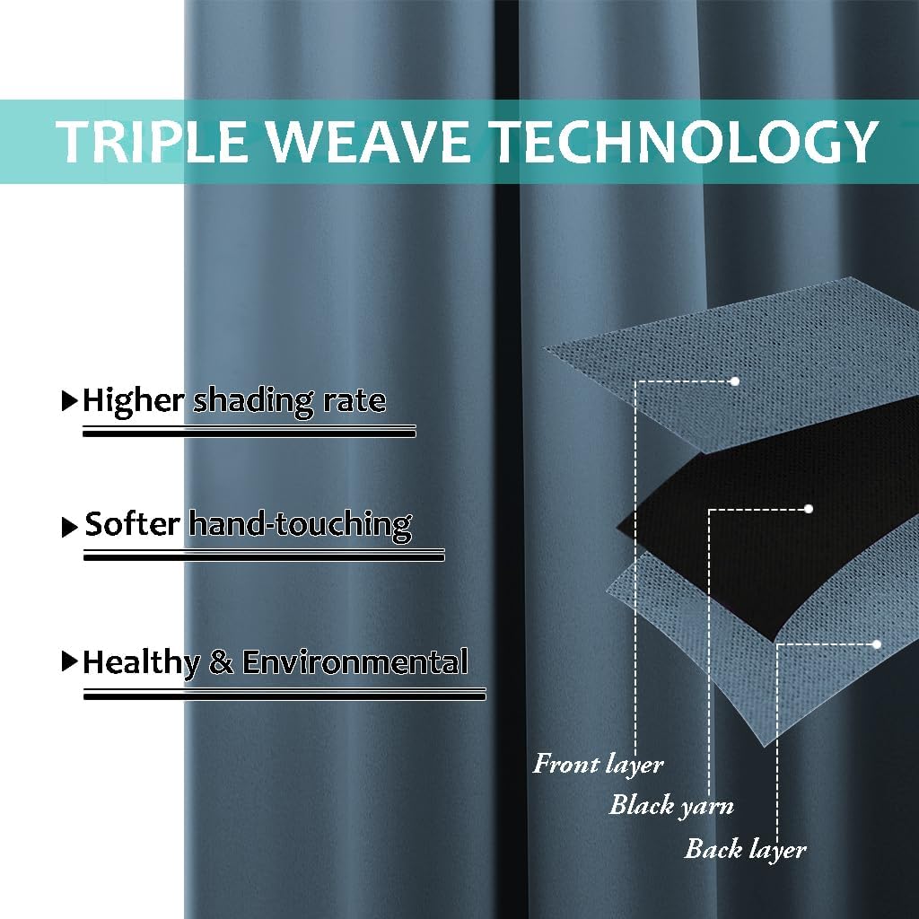 - UNIQUE DESIGN: Draperies constructed with 2 layers are all triple weave blackout fabric, balancing room temperature by insulating against summer HEAT and winter CHILL meanwhile protect PRIVACY. No chemical coating, no formaldehyde, ECO-friendly, bring harmonious to your family.