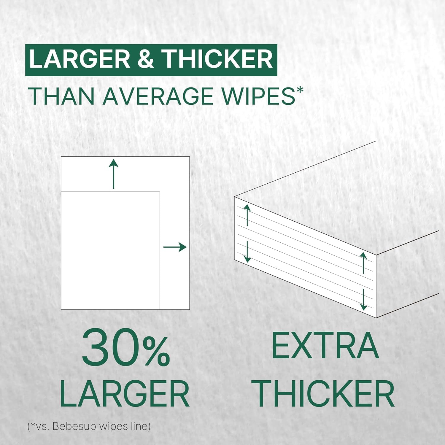 - Extra-Thick and Durable: GSM (grams per square meter) measures material thickness, and Bebesup Zero Baby Wipes feature an industry-leading 55 GSM. This means they’re thicker, stronger, and more absorbent than standard wipes, letting you clean messes with just one wipe instead of 2 or 3. Tough on messes but gentle on delicate skin, they’re perfect for your baby!❤️