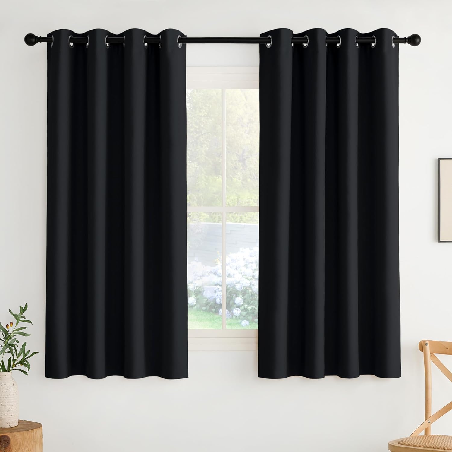 NICETOWN Blackout Curtains 63 inches Long Easy Care Grommet Drapes, Thermal Blackout Shades for Bedroom, Kids Room, Patio, Window, Laundry - Machine Washable, 2 Panels, W52 x L63, Black