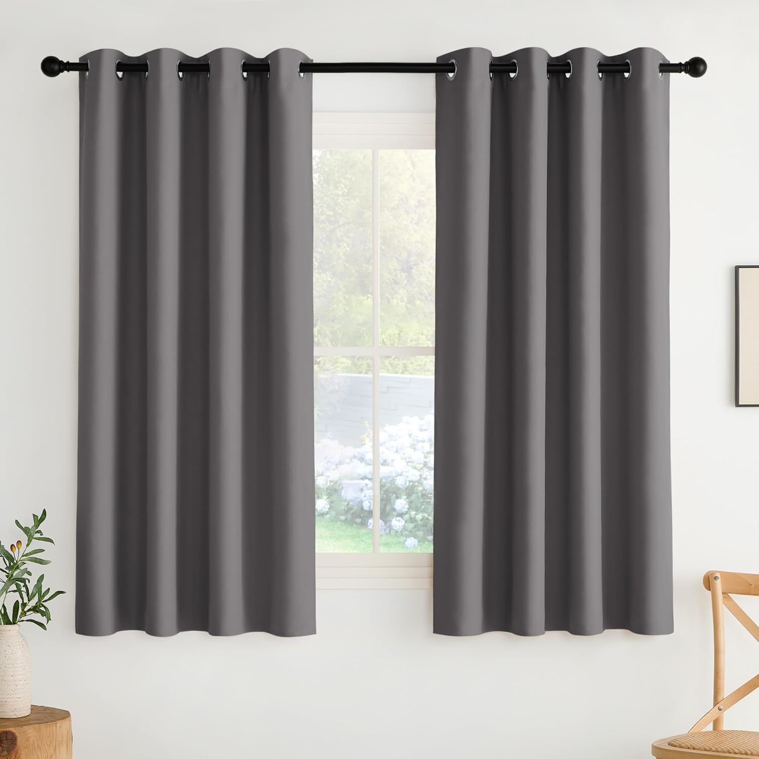 NICETOWN Grey Grommet Blackout Curtains 63 inch - Thermal Insulated Shades for Living Room, Yard, Bedroom, Closet, Laundry - Heavy-Duty, 2 Panels, W52 x L63