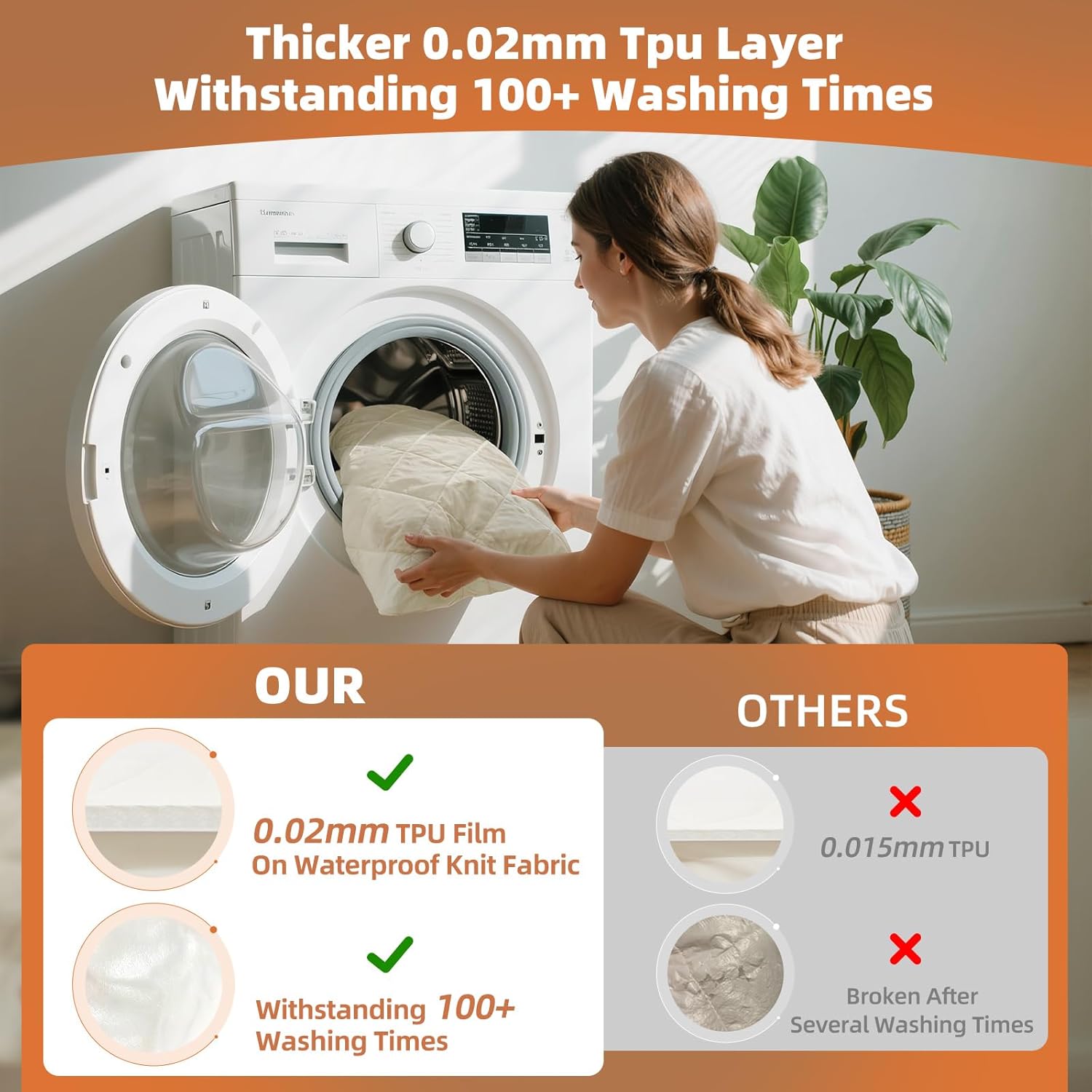 - NOISELESS MULTI-LAYER THICKER DESIGN FOR UNDISTURBED SLEEP: Engineered with thicker, breathable cotton padding, our organic mattress protector eliminates noises while maintaining perfect waterproofing. The premium thick and fluffy cotton layers deliver exceptional softness and comfort while effectively preventing noise - whether you're a light sleeper or restless adult. Unlike cheap plastic waterproof mattress protector that disturb sleep with every movement, our silent design ensures peaceful nights for the whole family.