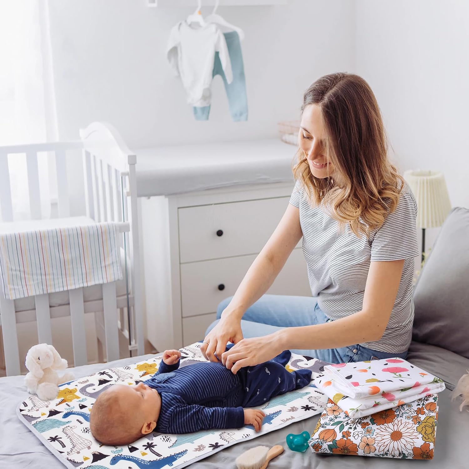 - ❤Ideal Baby Shower Gifts: The multi-colored fabric and adorable patterns of the portable diaper changing pad make it an excellent unisex gift for baby showers. Essential nursery items will surely be appreciated by every new mom. It’s a thoughtful present for any mother-to-be or girlfriend