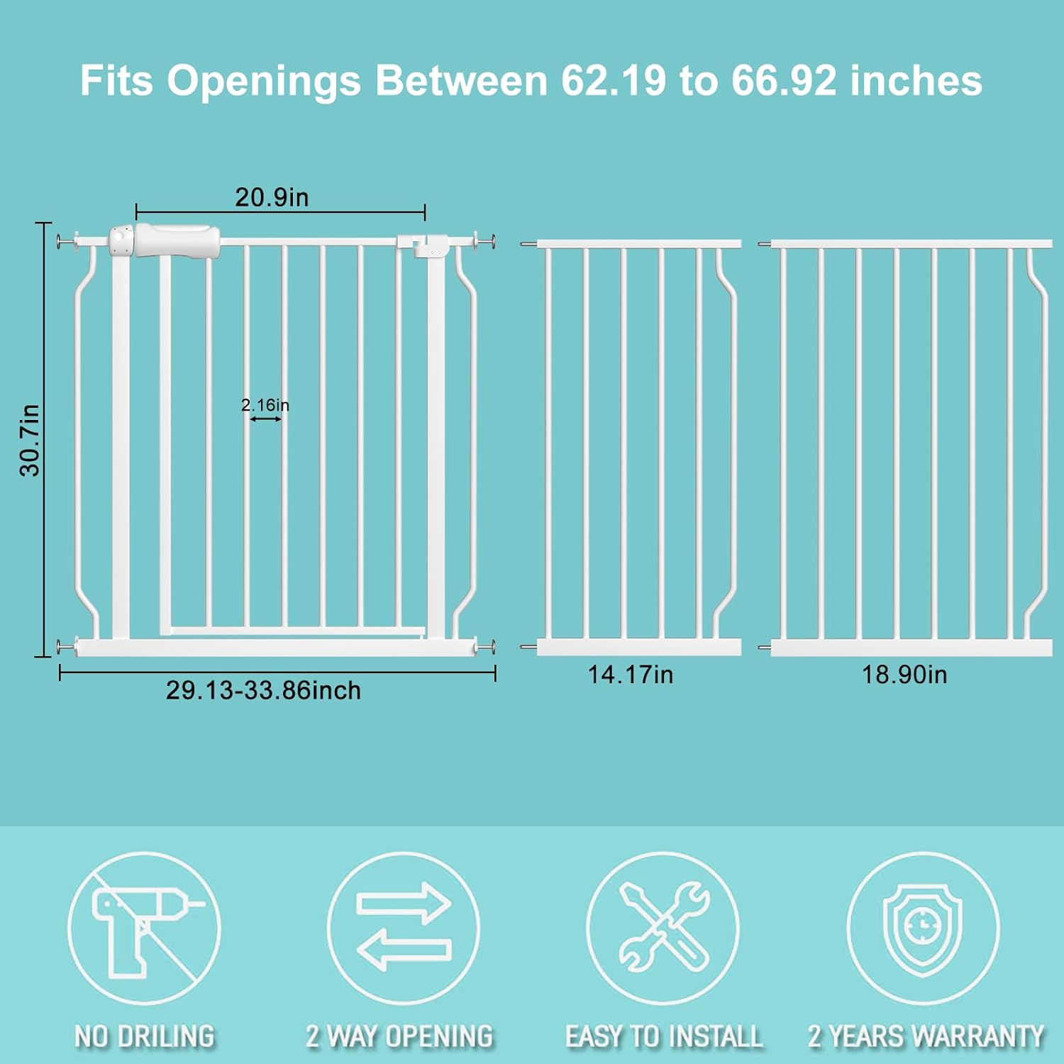 - 【Easy to install】 Our no drill baby gate comes with 4 adjustable pressure bolts, which is very easy for quick installation: no tools required, no need for drilling holes and no damage to your house wall.Extra wide pressure mounted baby gate can also quickly be removed out of the opening for easy storage.If you have any problems when installing, feel free to contact us.