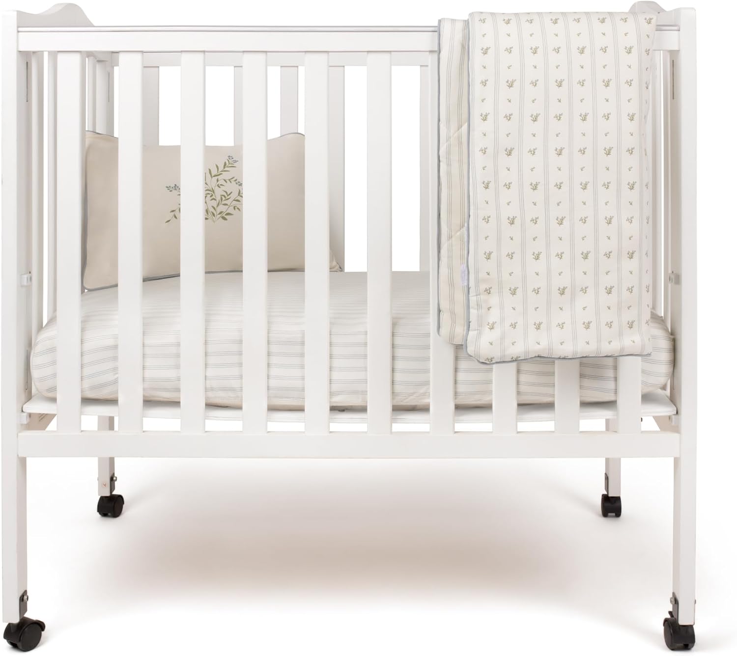 - Beautifully ribbon-wrapped and gift-ready, this mini crib comforter set is perfect for baby showers and a must-have on any baby gift registry—combining style, quality, and convenience.