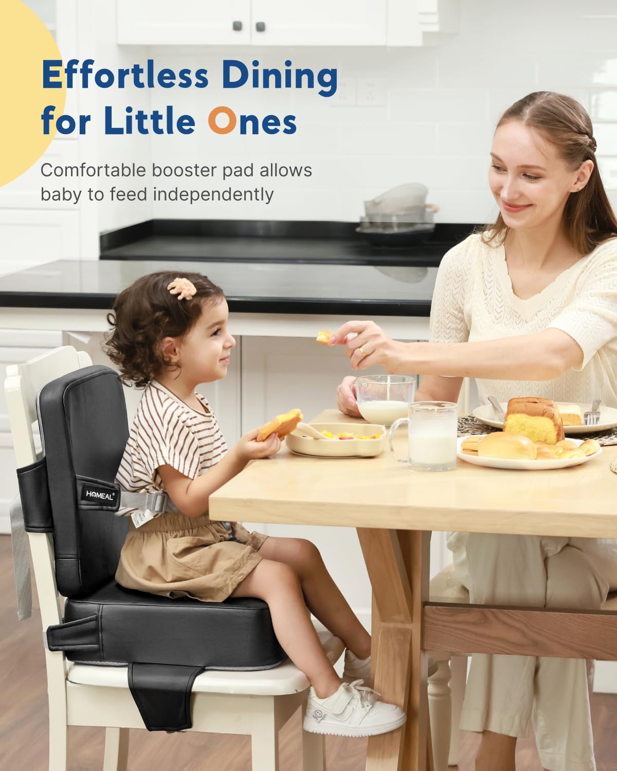 HOMEAL Booster Seat for Kitchen Chair - Toddler Booster Seat for Dining Table - Dining Seat with Adjustable Straps - Non-Slip Base & Breathable Fabric - Dark Gray