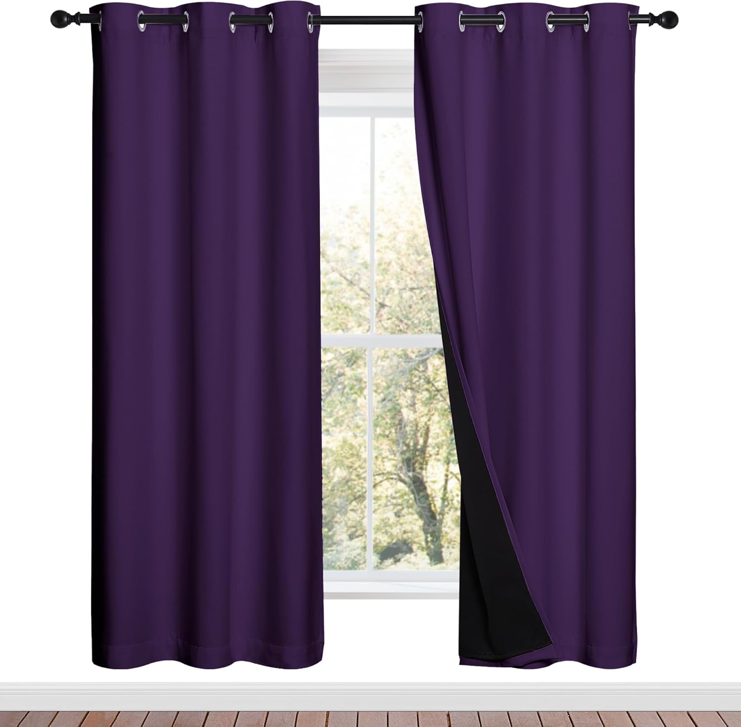 NICETOWN Full Shade Curtain Panels, Royal Purple, 42 x 72 inch, Pair of Energy Smart & Noise Blocking Out Blackout Drapes for Dining Room Window, Thermal Insulated Guest Room Lined Window Dressing