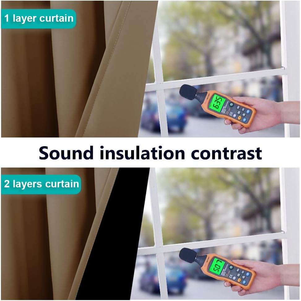 - Noise Reducing: Heavyweight Blackout Lined Curtain Panels can be a good sense of drape, making the window completely closed, to cut noise down. The effect of absorbing sound is 2 times higher than the ordinary 1 layer of curtains so that at any time you are not disturbed by noise.