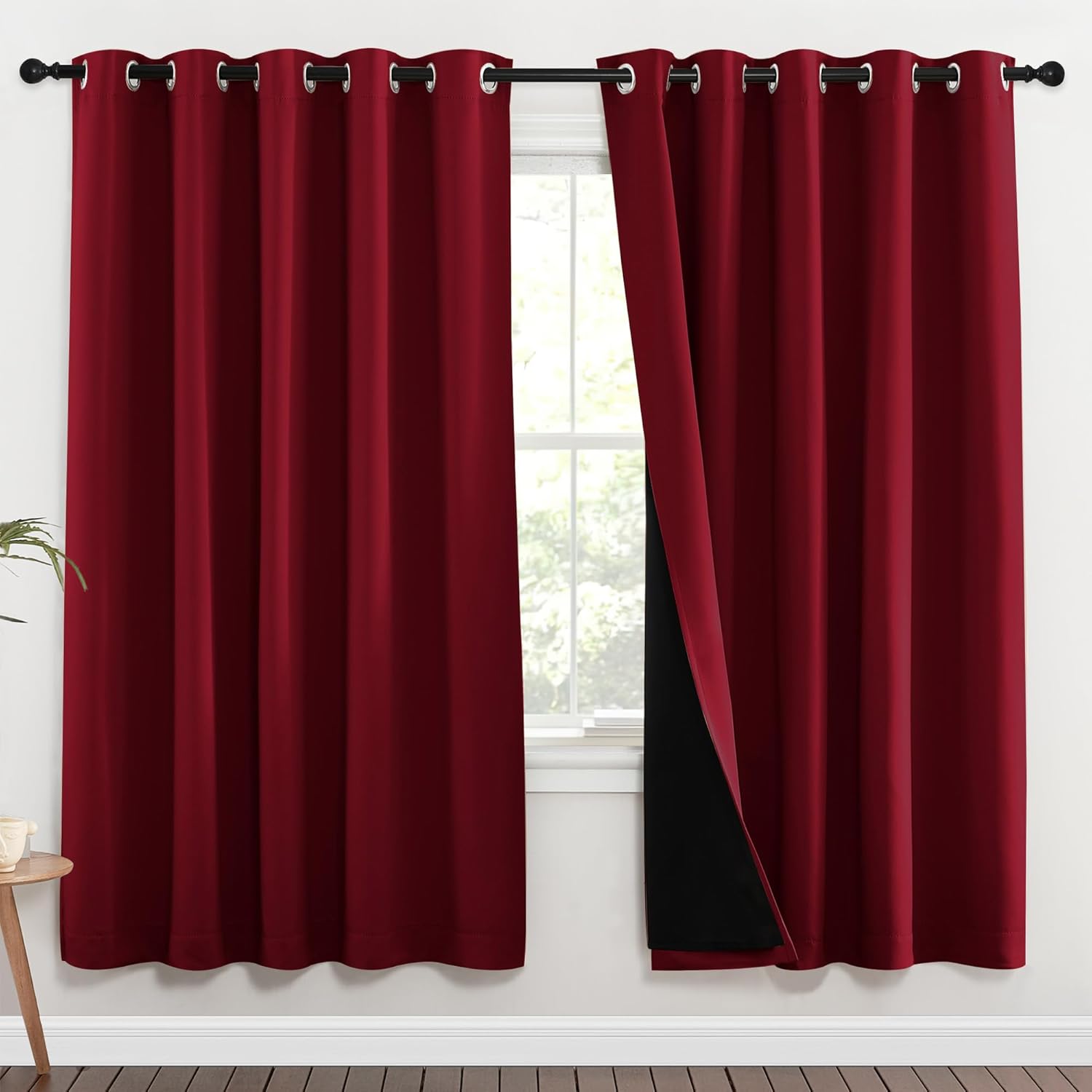 NICETOWN Full Shade Curtain Panels, 70 x 72 inch, Burgundy Red, Pair of Energy Smart & Noise Blocking Out Blackout Drapes for Dining Room Window, Thermal Insulated Guest Room Lined Window Dressing