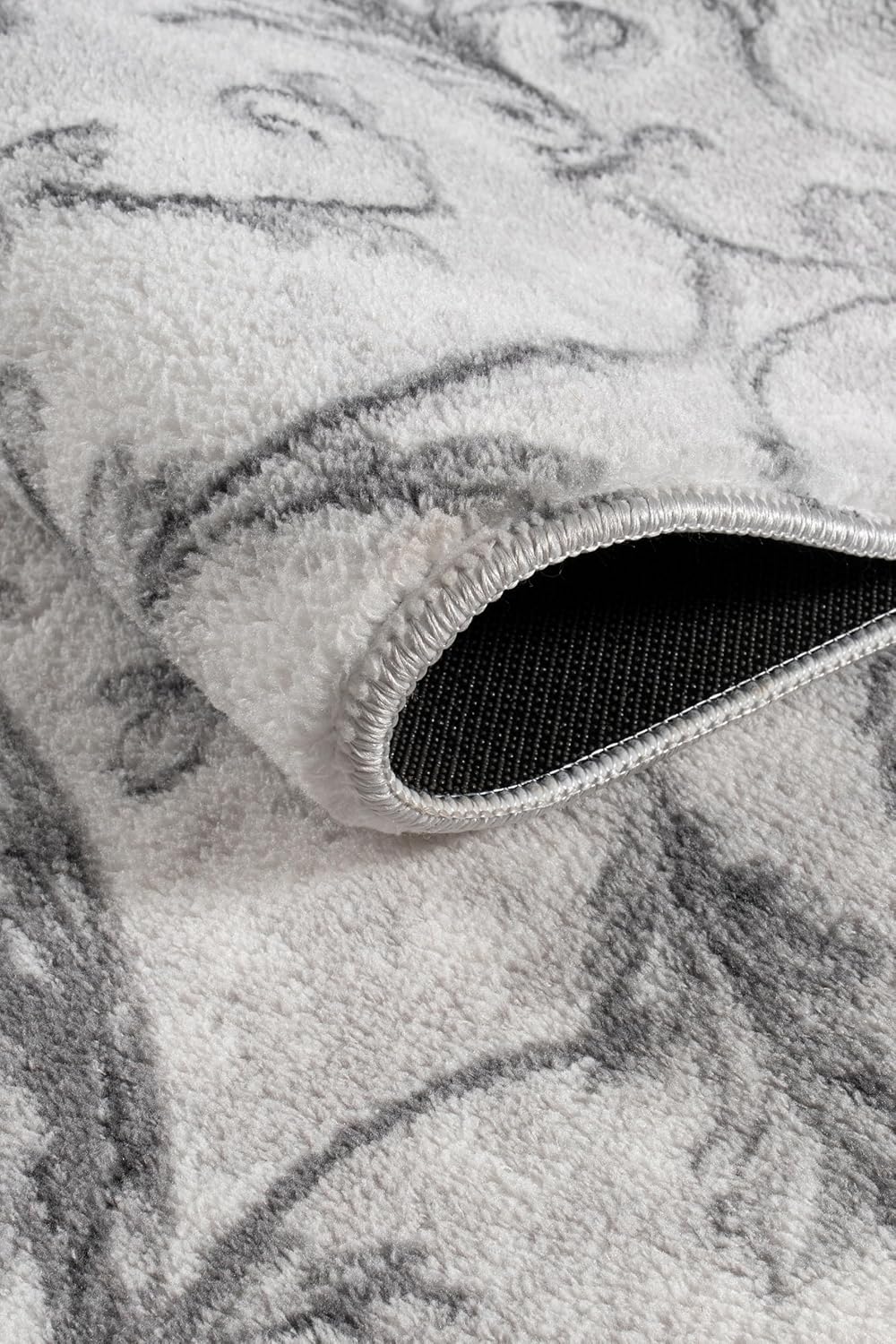 - Non-Slip Safety, No more slipping or sliding, Our 5x7 floral grey area rug features a high-quality rubberized backing that keeps it firmly in place, even in high-traffic areas or on hardwood floors. The 0.43 inch medium-pile carpet is more durable, easier to clean, and ideal for high-traffic areas. It looks great under a coffee table, in front of a couch, by your bed, or in your entryway.