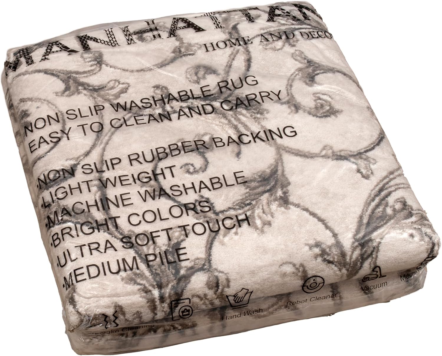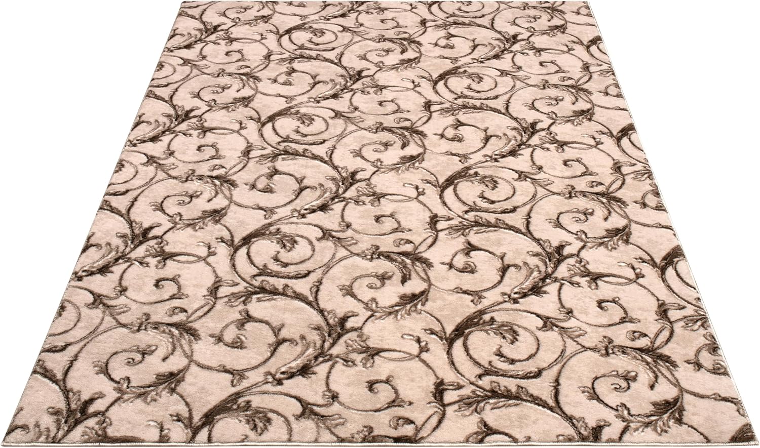 - Non-Slip Safety, No more slipping or sliding, Our 5x7 floral beige - brown area rug features a high-quality rubberized backing that keeps it firmly in place, even in high-traffic areas or on hardwood floors. The 0.43 inch medium-pile carpet is more durable, easier to clean, and ideal for high-traffic areas. It looks great under a coffee table, in front of a couch, by your bed, or in your entryway.