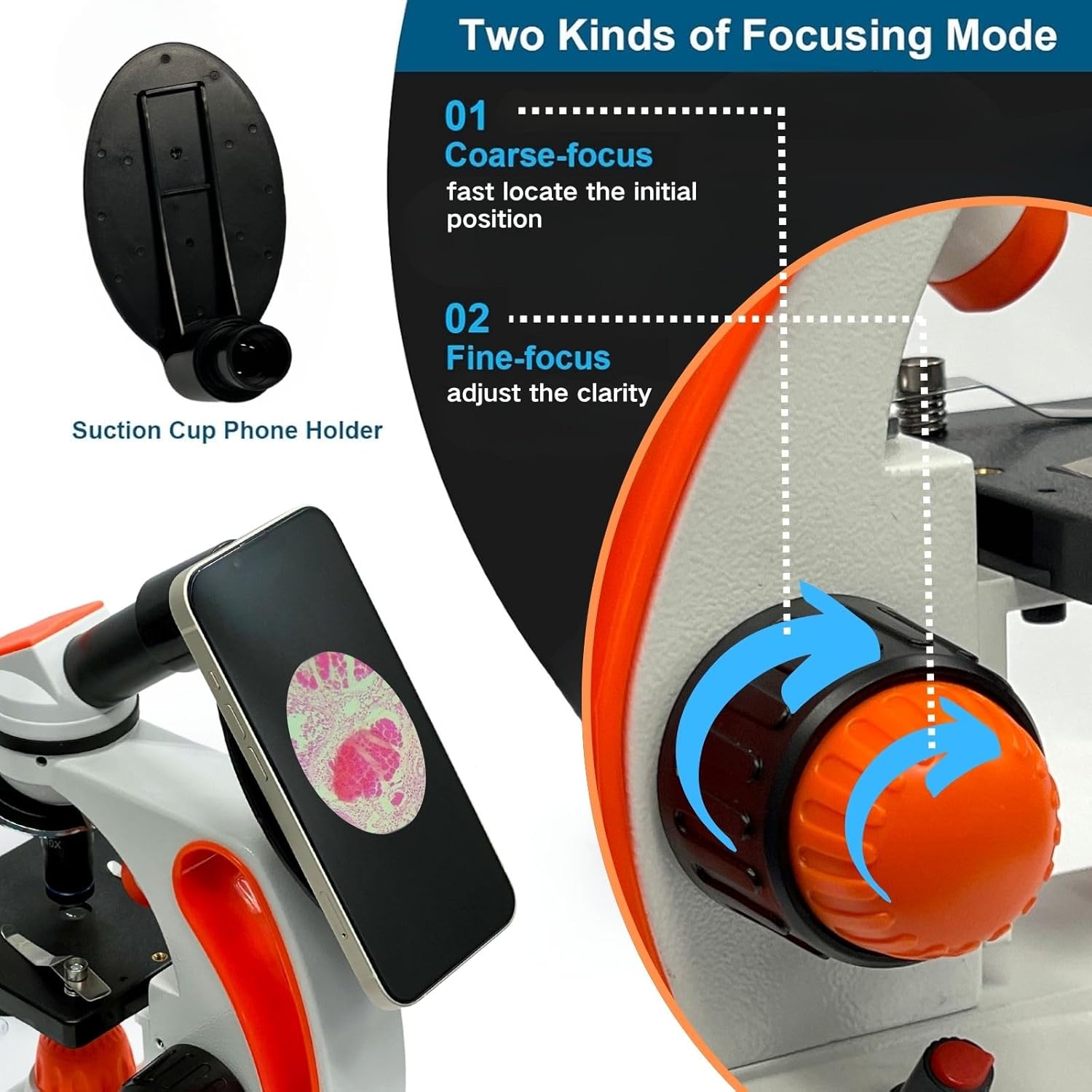 Mental Compound Microscope for Kids Students Adults,40X-2000X, Experience Kits for Home Education,School Laboratory with Phone Adapter