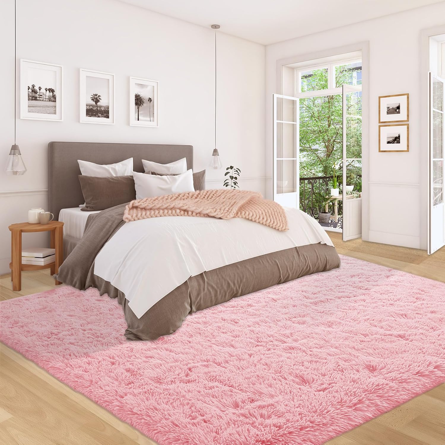 6x9 Area Rug for Living Room: Fluffy Shag Soft Washable Rugs Large Fuzzy Plush Indoor Carpet for Bedroom Nursery Playroom Kids Girls Boys Room (Pink, 6'x9')