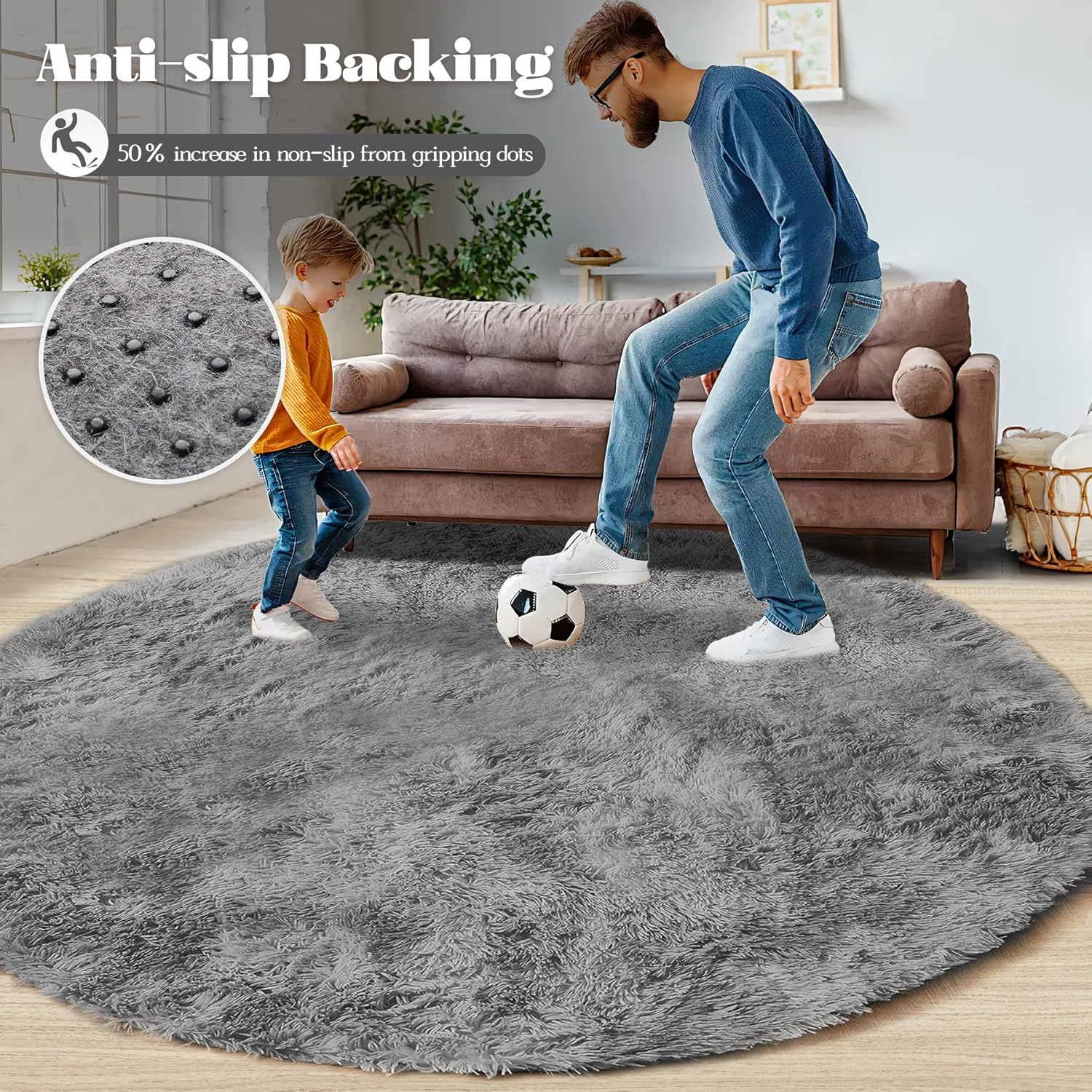 - ULTRA SOFT RUG: This fluffy rug offers instant coziness with a super-shaggy faux fur surface that feels like a cloud underfoot, plus a thick foam interlayer for extra support. Made from premium material, this 4-ft circular rug is gentle on the skin and perfect for creating a cozy spot for your family to relax. Enjoy your new rug and the comfort it brings!