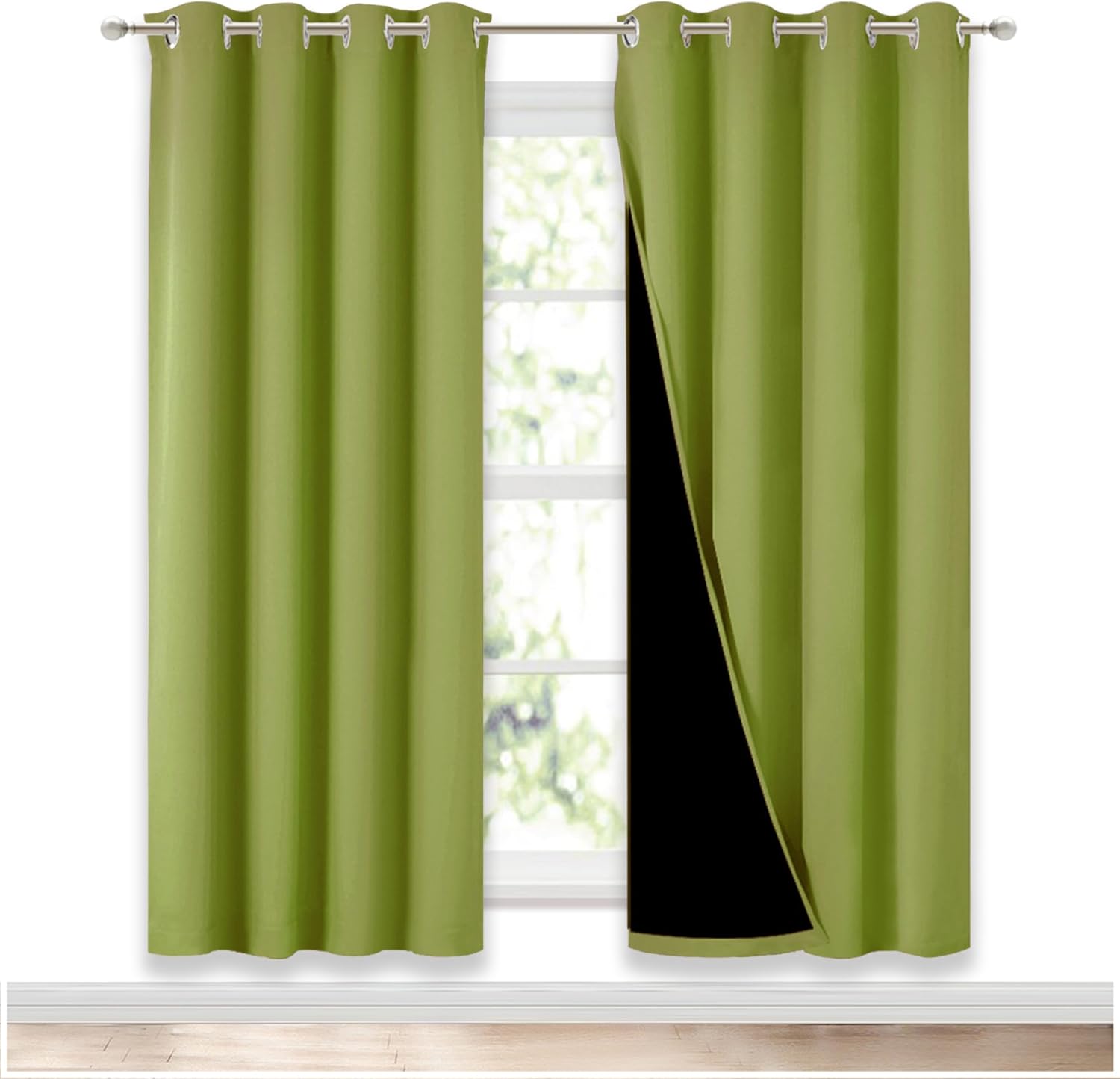 NICETOWN 100% Blackout Window Curtain Panels, Fresh Green, 2 Pieces, 52-inch Wide Per Panel, Full Light Blocking Drapes with Black Liner for Nursery, 72-inch Drop Thermal Insulated Draperies