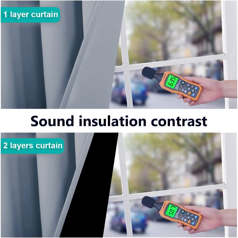 - NOISE REDUCING: Heavyweight Blackout Lined Curtain Panels can be a good sense of drape, making the window completely closed, to achieve SOUNDPROOF. The effect of absorbing sound is 2 times higher than the ordinary 1-layer of curtains so that at any time you are not disturbed by noise.