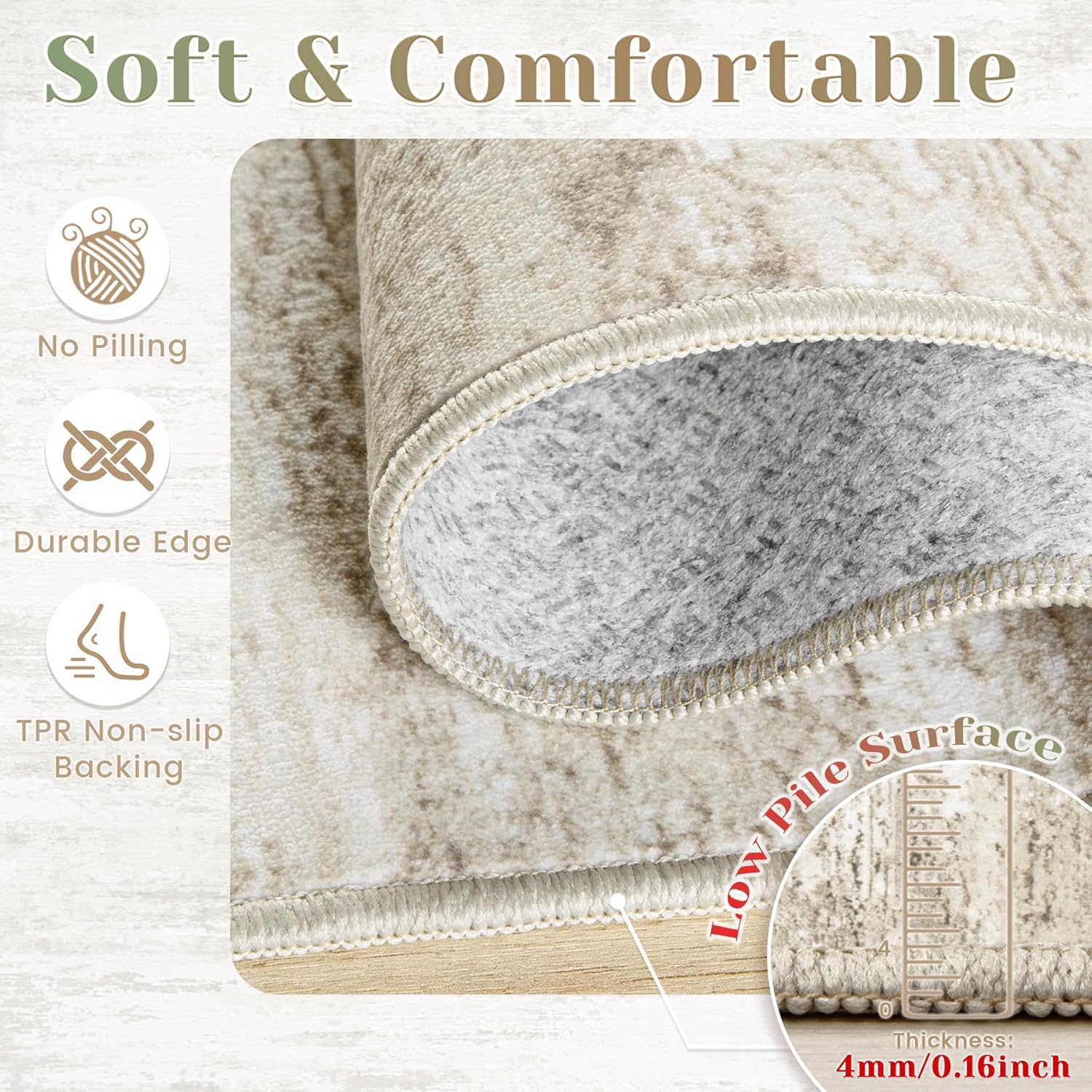 Washable Rug 5x7 Area Rugs for Living Room: Neutral Soft Rug Abstract Non Slip Low Pile Modern Carpet for Bedroom Kitchen Nursery Office Dining Room Indoor (Beige, 5'x7')