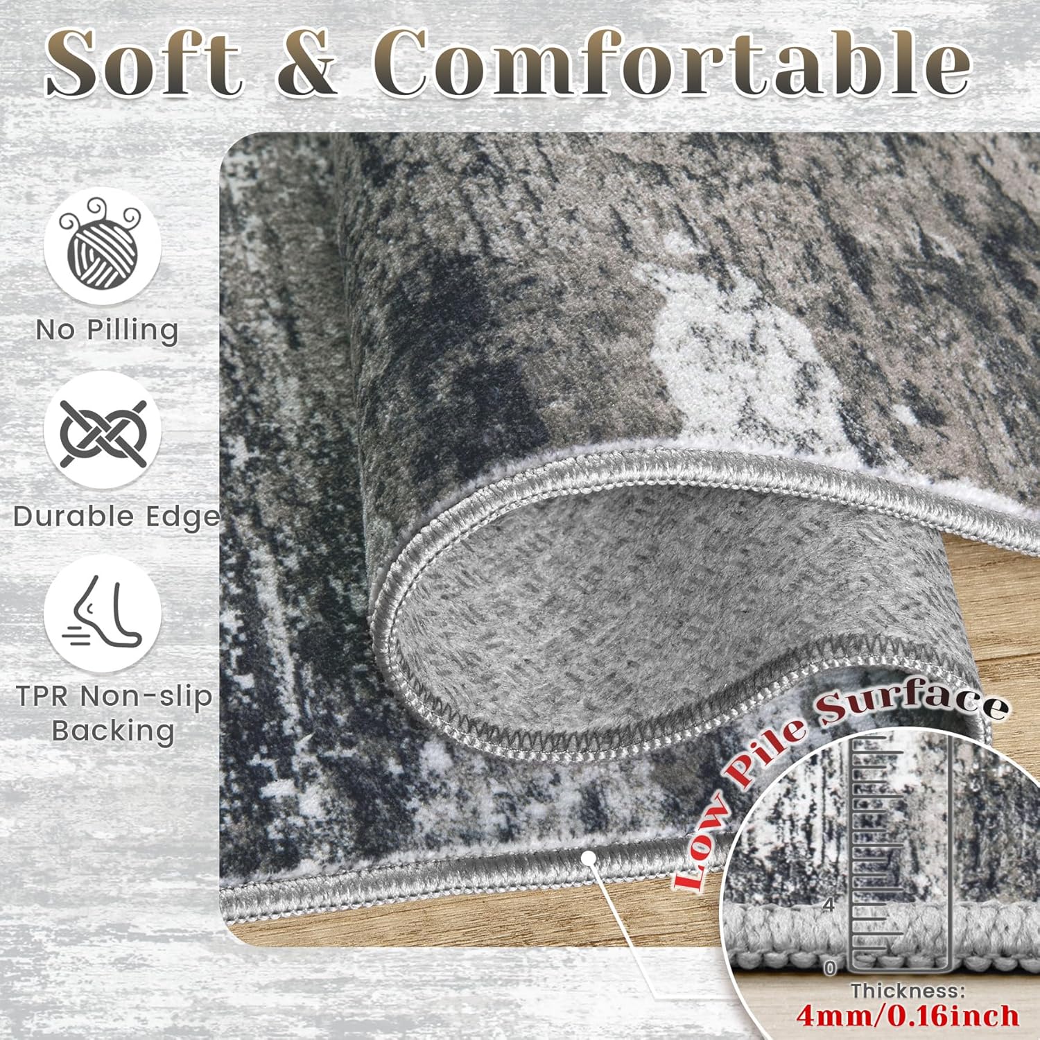 Washable Rug 8x10 Area Rugs for Living Room: Large Neutral Soft Rug Abstract Non Slip Low Pile Modern Carpet for Bedroom Kitchen Nursery Office Dining Room Indoor (Black, 8'x10')