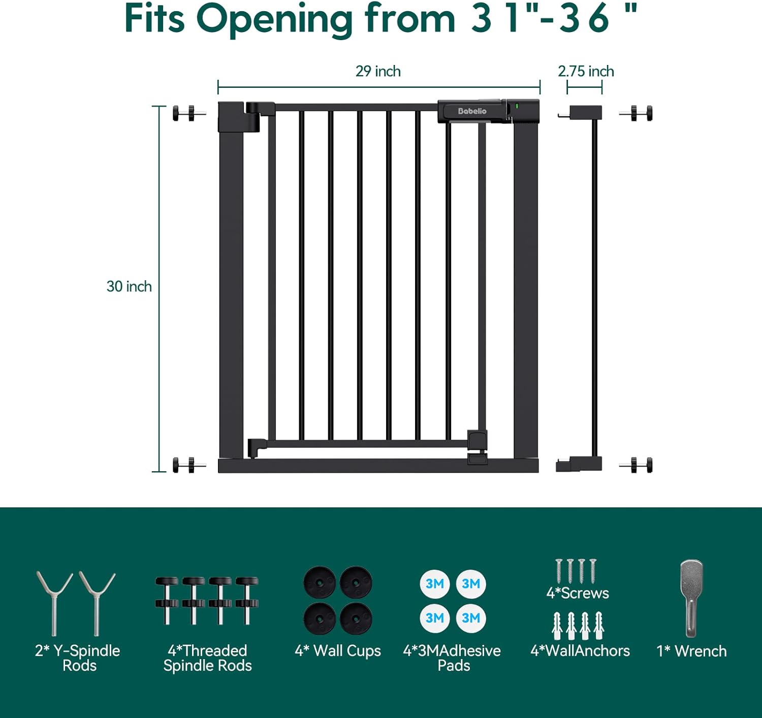 BABELIO Baby Gate for Doorways and Stairs, 31-36" Pet Gate with Wide Walk Thru Door and Lock Indicator, No Drill Pressure Mounted Safety Gate with Double Lock and Self-Closing, Black