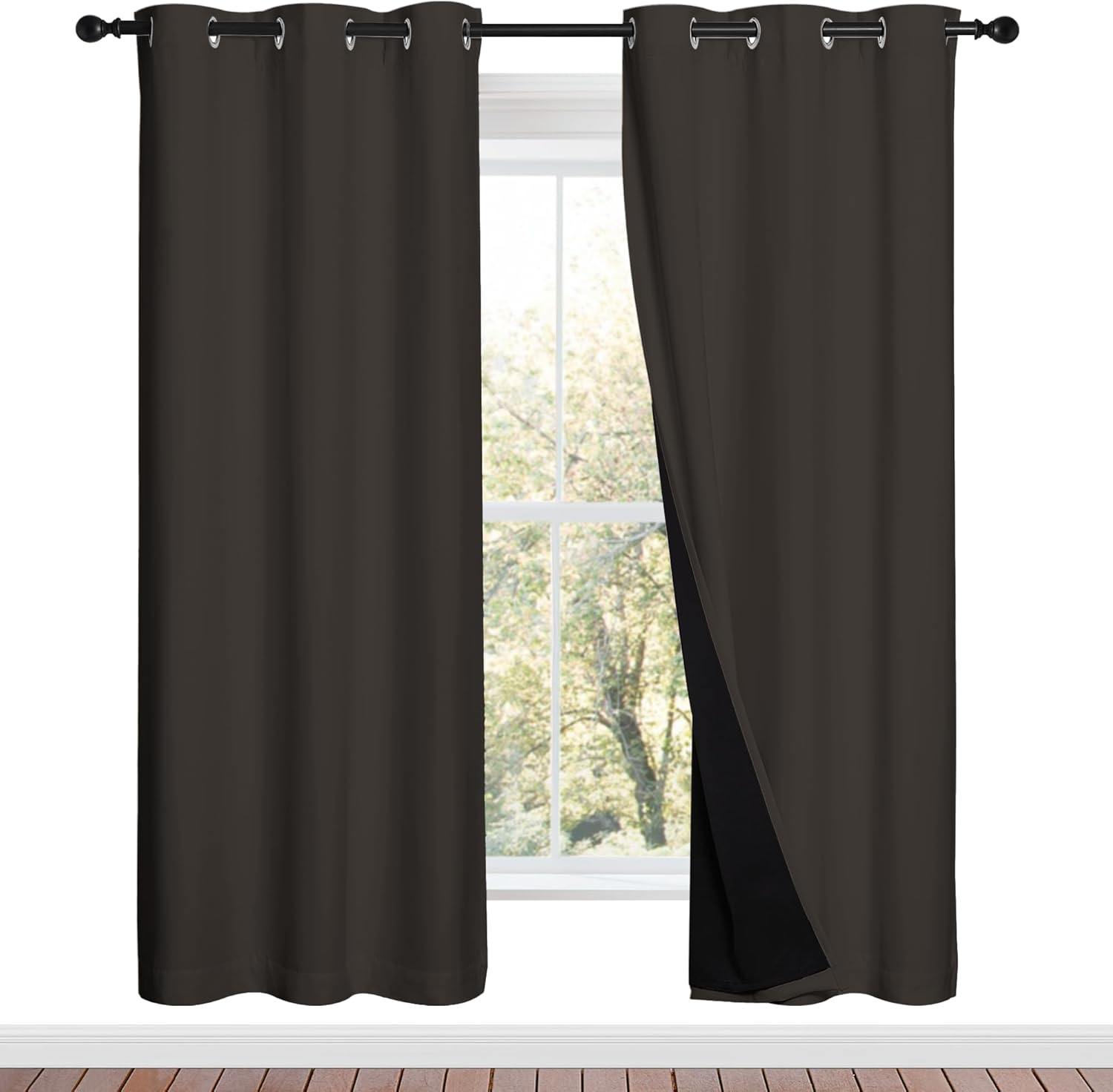 NICETOWN 100% Blackout Window Curtain Panels, Brown, 2 Pieces, 42-inch Wide Per Panel, Full Light Blocking Drapes with Black Liner for Nursery, 72-inch Drop Thermal Insulated Draperies