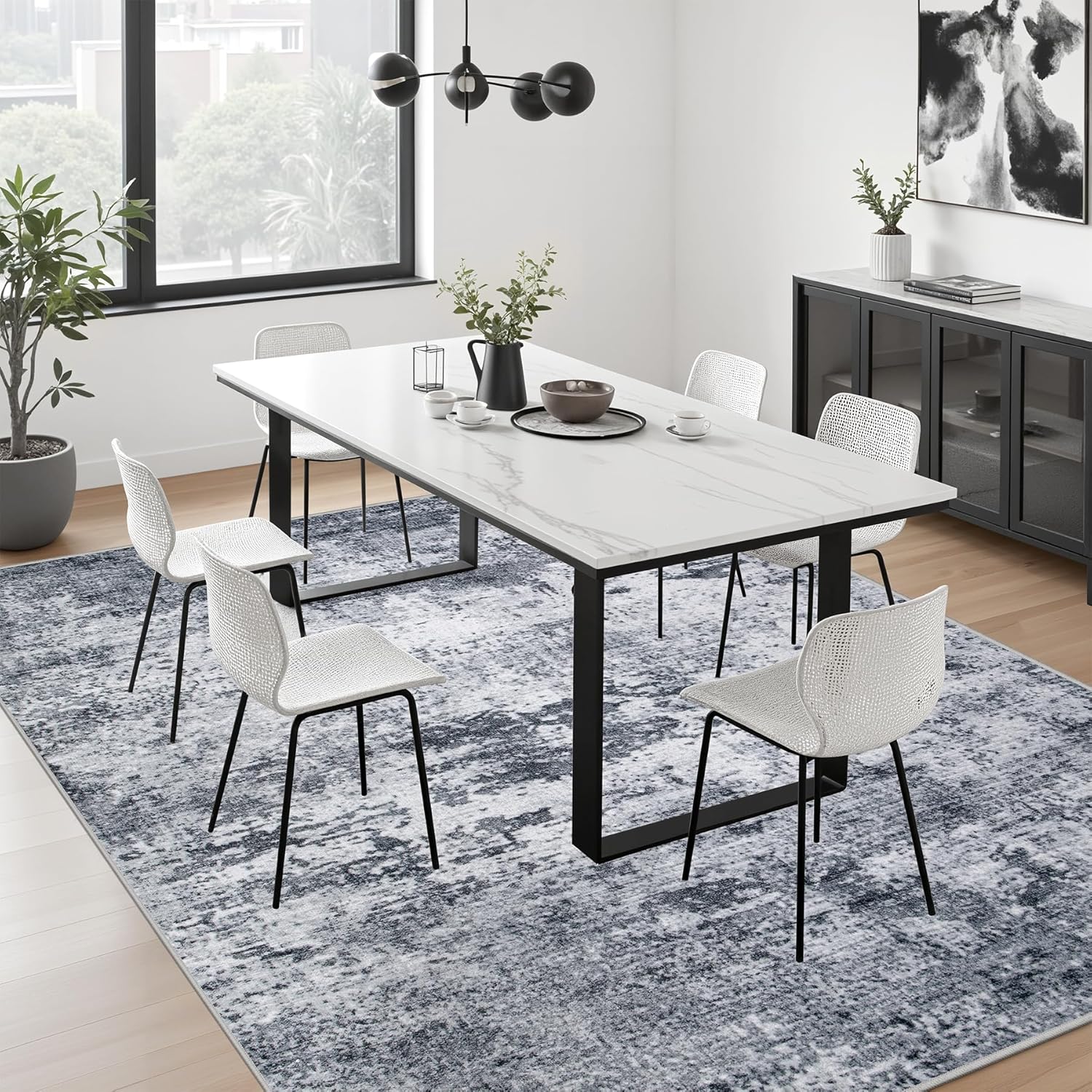8x10 Area Rug Living Room Rug: Washable Modern Abstract Soft Thin Rug Indoor Floor No Slip Stain Resistant Carpet for Bedroom Dining Room Farmhouse Nursery Home Office - Grey