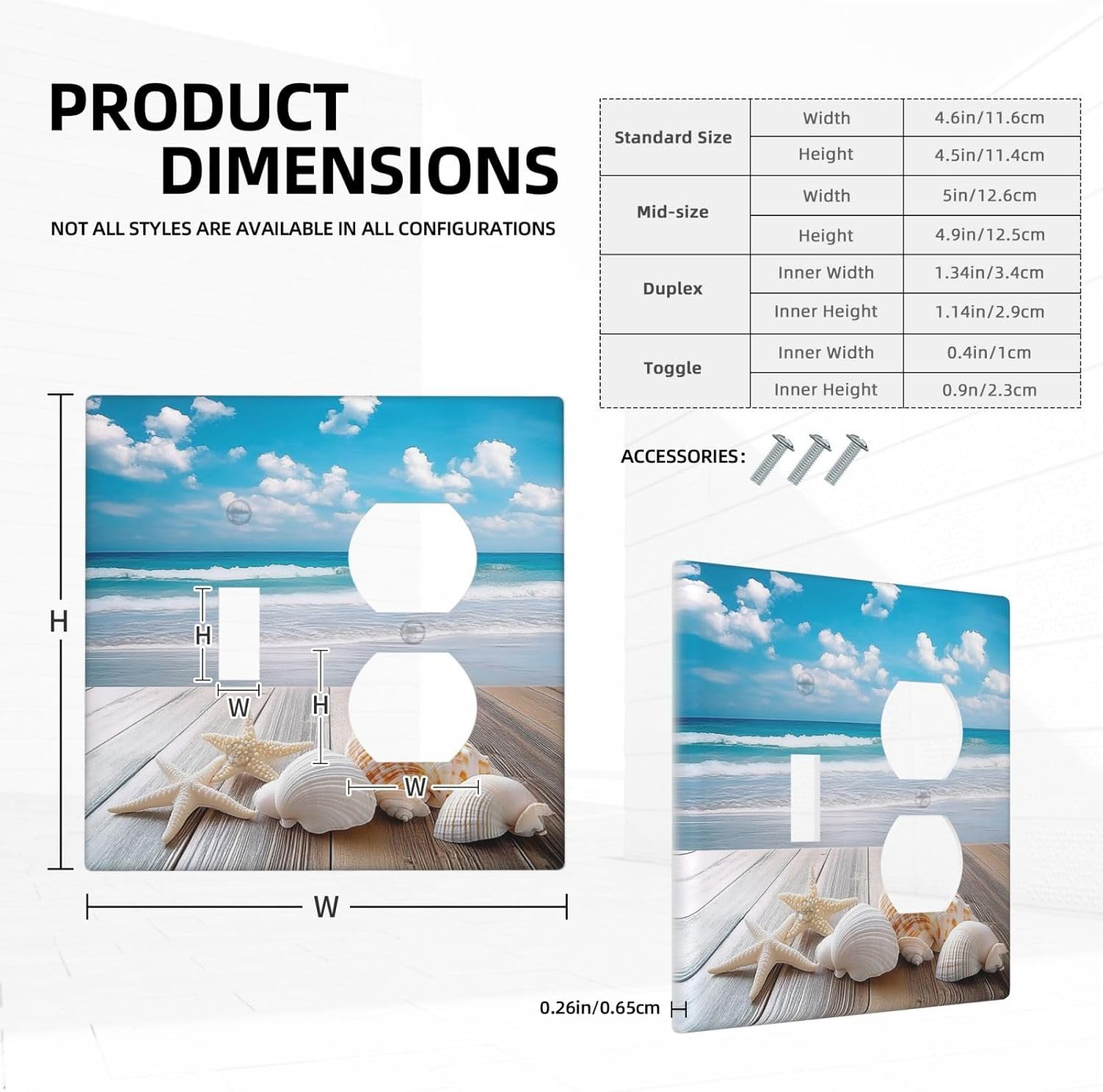 Wallplates Beach Waves Brown Wood Starfish Shells 1 Toggle 1 Duplex Switch Plate Electrical Gfci Faceplate Decorative Light Switch Covers For Bathroom Living Room Decor