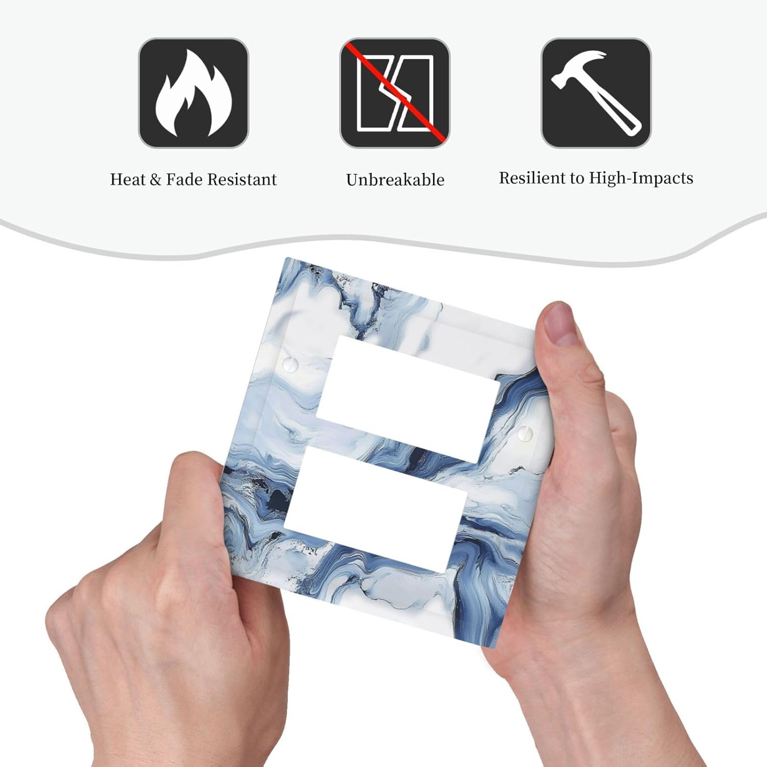 Decorative Outlet Covers White Marble Navy Blue Line Fluid 2 Gang Double Gfci Rocker Electrical Wall Panels Light Switch Cover Plate For Bathroom Kitchen Decor