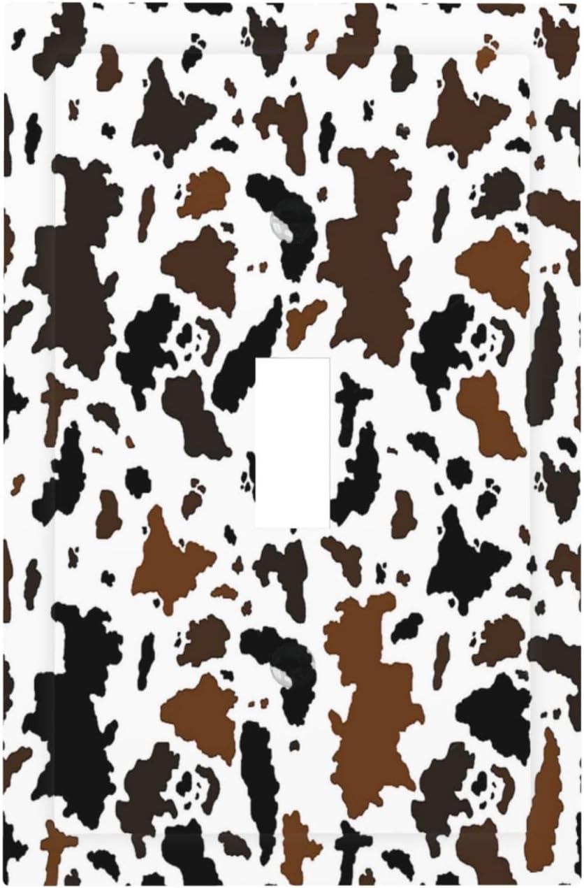 Decorative Light Switch Cover Rustic Cowhide Highland Cow Milk Cow 1 Gang Single Toggle Device Electrical Faceplate Switchplates Decorator Outlet Wall Plate For Farmhouse Home Decor