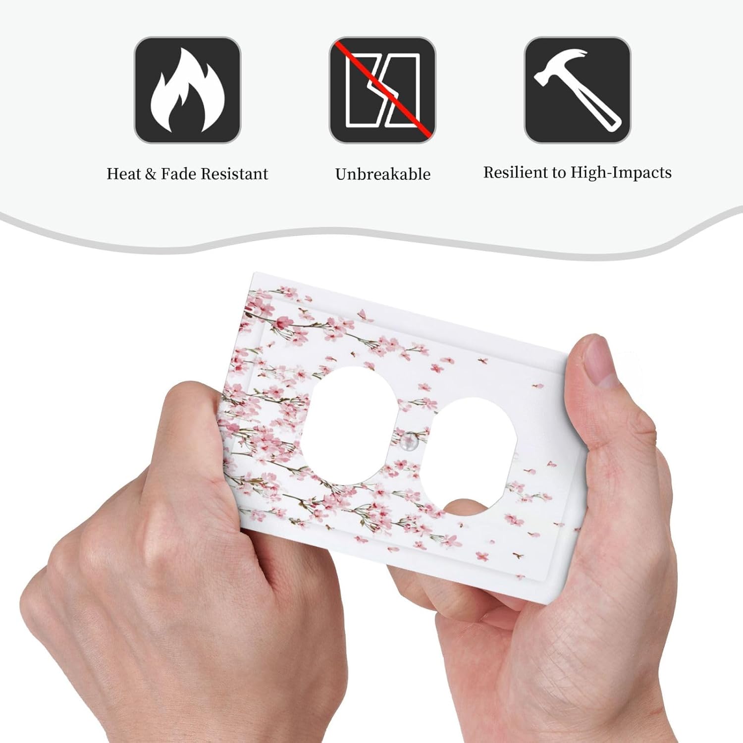 Outlet Covers Sakura Plant Floral Pink Flowers 1 Gang Duplex Light Switch Cover Decorative Switch Plates Electrical Receptacle Faceplate Wall Plate For Bed Room Living Room Decor