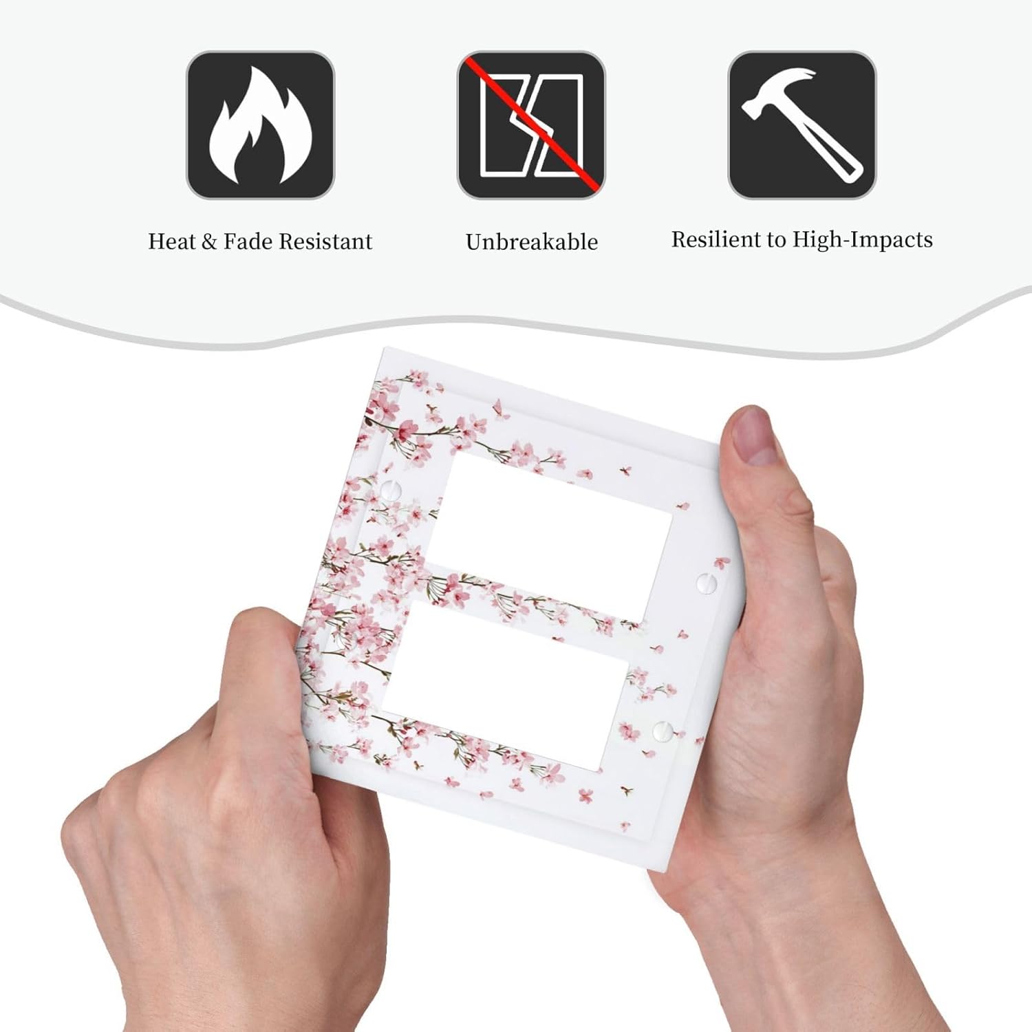 Decorative Outlet Covers Sakura Plant Floral Pink Flowers 2 Gang Double Gfci Rocker Electrical Wall Panels Light Switch Cover Plate For Bed Room Living Room Decor