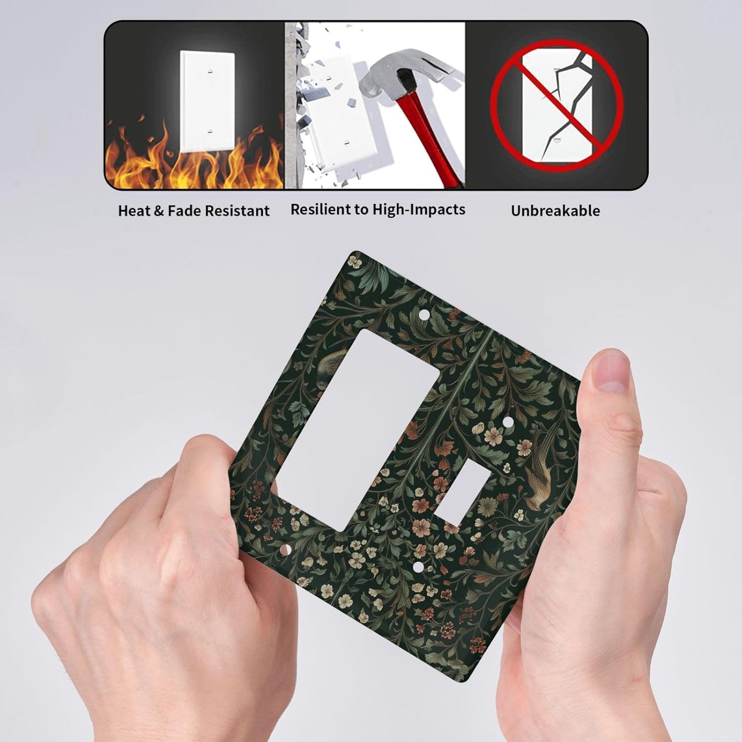 Outlet Covers Vintage Morris Colorful Flower Green Leaf 1 Toggle 1 Rocker Combination Decorative Wall Plate Electrical Switch Plates Light Switch Cover Plate For Bed Room Living Room Decor