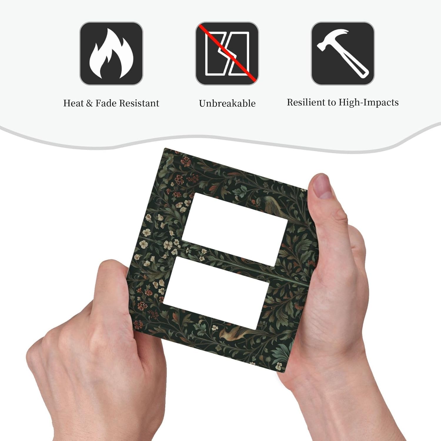 Decorative Outlet Covers Vintage Morris Colorful Flower Green Leaf 2 Gang Double Gfci Rocker Electrical Wall Panels Light Switch Cover Plate For Bed Room Living Room Decor