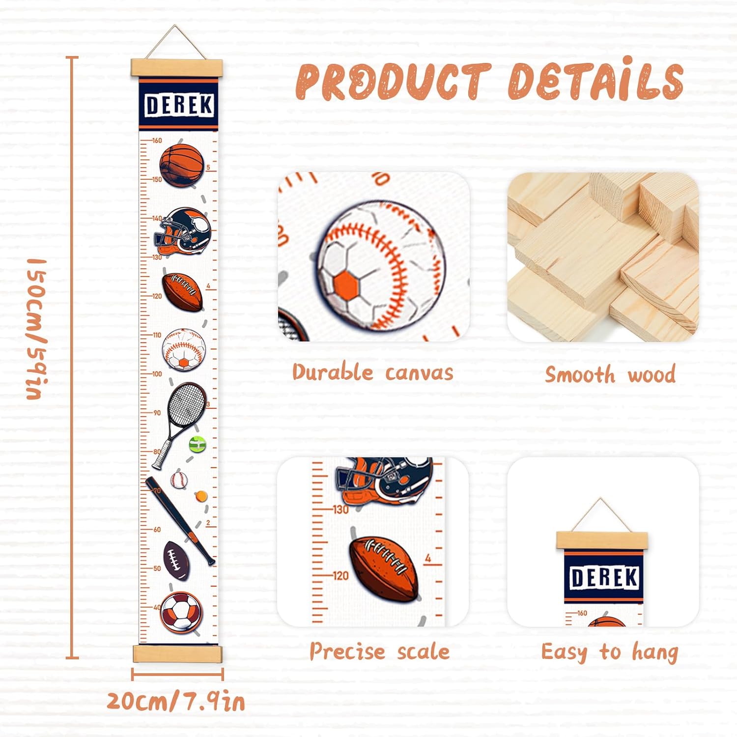 Personalized Name Growth Chart for Kids, Ball Measuring Height Chart, Meaningful Memories Through Kid Size Chart Measurement, Growth Chart Ruler for Wall, Toddler Room Decor