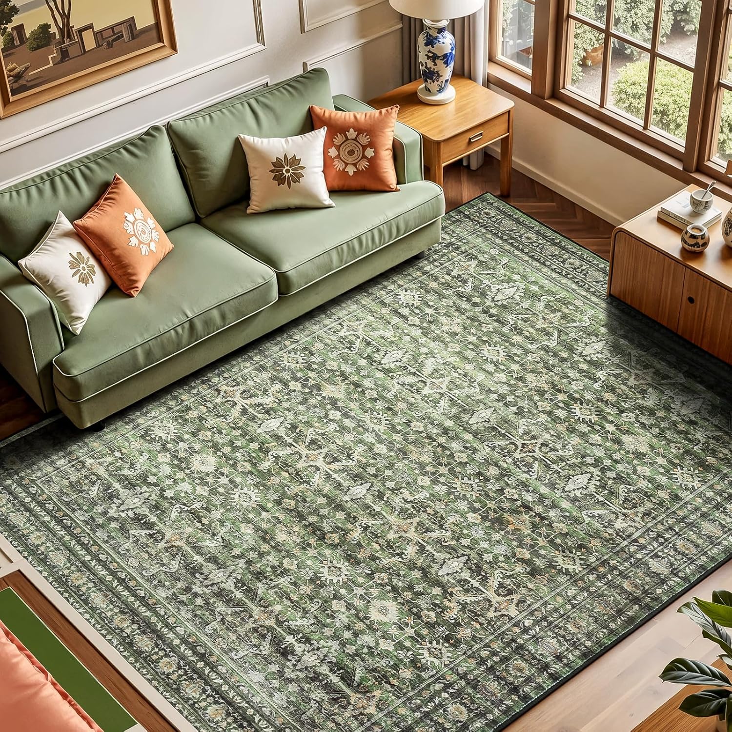 Lofus 6x9 Area Rug for Living Room,Green Washable Area Rugs with Non-Slip Backing,Soft Boho Carpets for Bedroom Dining Room Home Office Indoor Nursery