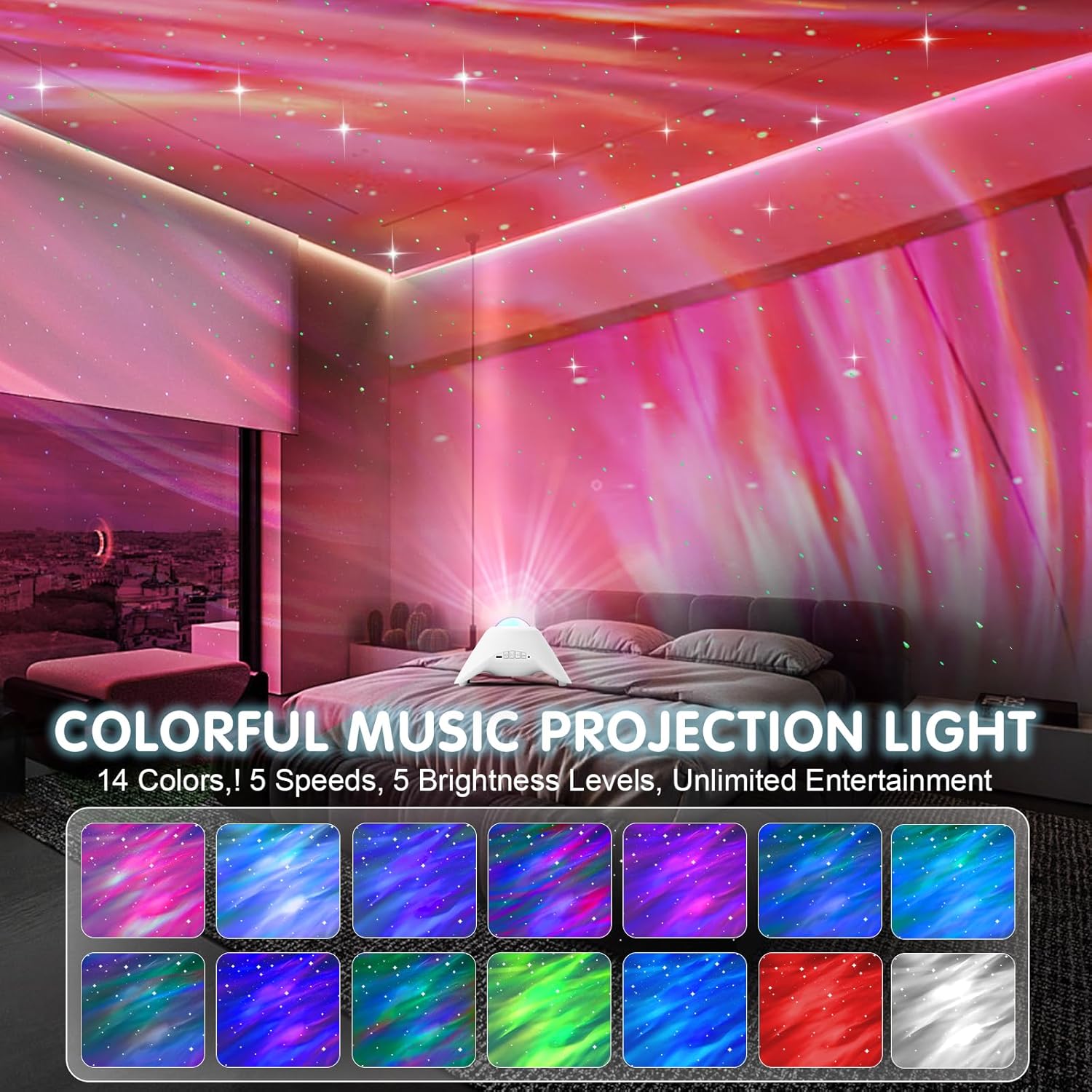 - 【Wonderful Music】The northern lights projector can play moving music through bluetooth connection on a mobile phone. After upgrading the sound quality effect, turn on the music mode and the lights will dance to the music, which is very suitable for family gatherings and parties.